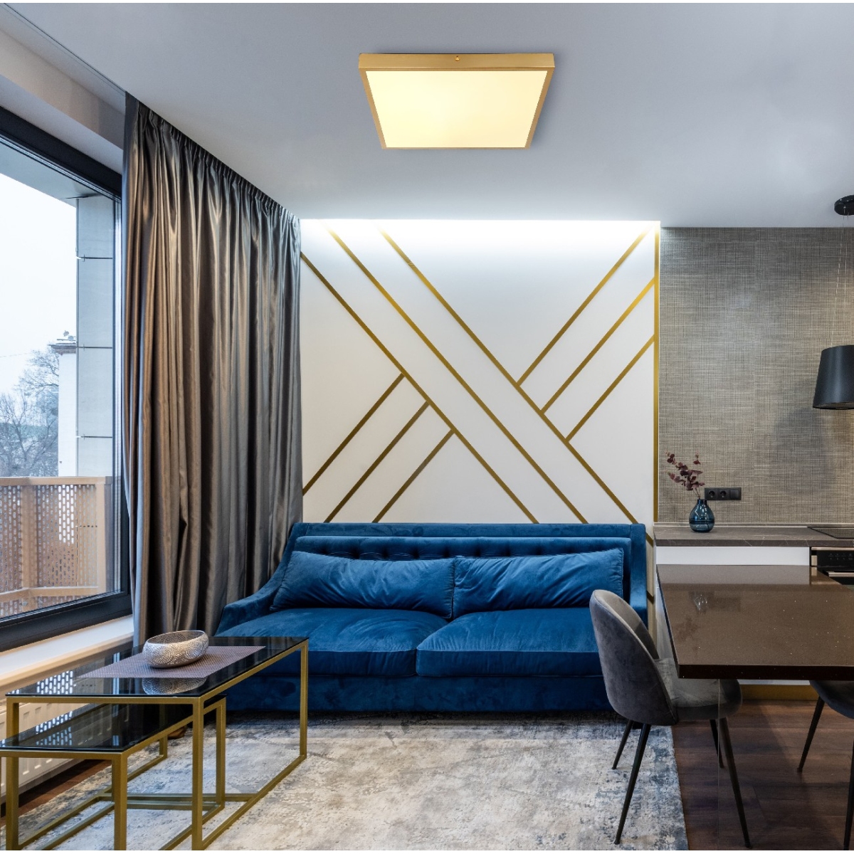 Napravljena od metala boje mesinga, plafonska lampa TIBEY serije impresionira svojim jednostavnim dizajnom. Četvrtasta plafonska lampa (35 cm) sa opalnim plastičnim poklopcem ima ugrađen LED panel koji emituje toplu belu svetlost od 3000 Kelvina i tako stvara prijatnu atmosferu.