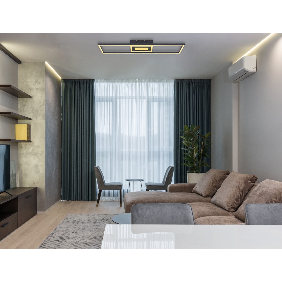 Ova plafonska lampa iz serije TINY je divan dodatak vašem enterijeru. Plafonska lampa dugačka 81 cm sastoji se od crnog pravougaonog metalnog rama, koji je završen opalnim akrilom i fiksiran za crni metalni blok. Površina kuboida unutar rama može se posebno osvetliti i takođe je obezbeđena opalnim akrilom, koji je, međutim, lepo podeljen crnim metalom. Sa uključenim LED sijalicama, plafonska lampa obezbeđuje 1100 lumena jako svetlo sa prijatnom svetlom bojom od 3000 Kelvina (topla bela). Sa ostalim modelima iste serije možete upotpuniti celokupnu sliku u svom prostoru i obezbediti elegantan ambijent.
