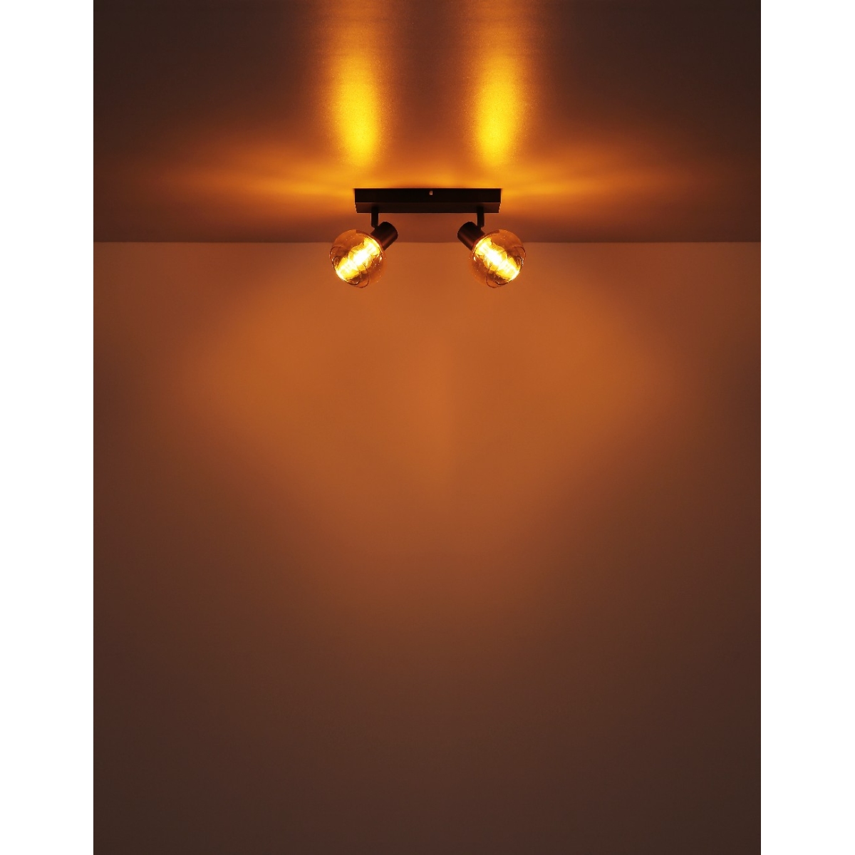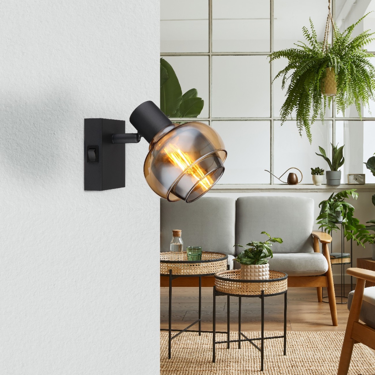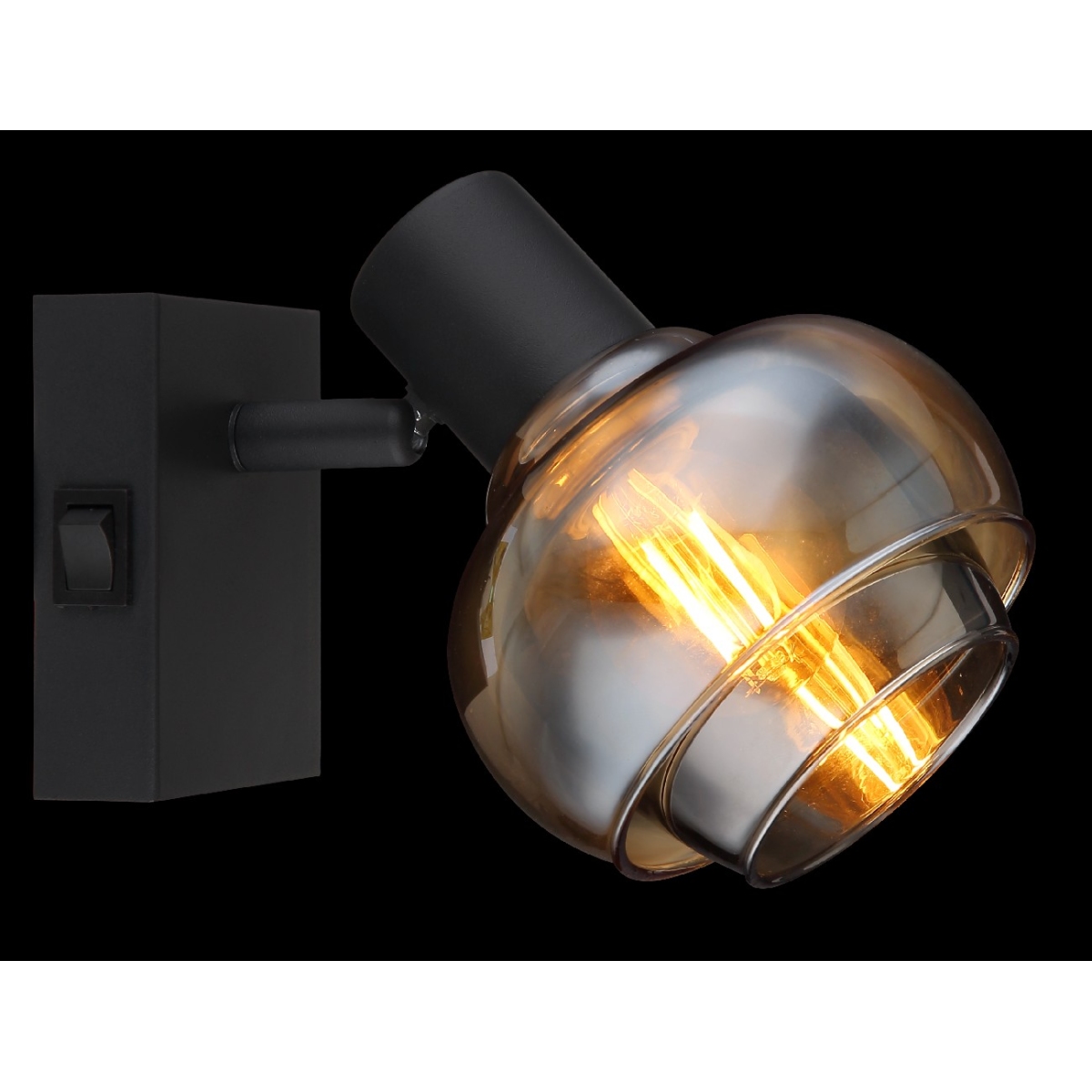 Otkrijte fascinantan reflektor sa E14 grlom i učinite da vaš dom zablista! Svojim stilskim dizajnom i jedinstvenom kombinacijom crnog mat metala, stakla u boji ćilibara i dima, ovaj reflektor će privlačiti poglede u bilo kojoj prostoriji. Zahvaljujući praktičnom prekidaču na lampi, imate potpunu kontrolu nad osvetljenjem. Sa dimenzijama od 105x125mm (WxH) i dužinom od 135mm (AL), reflektor se savršeno uklapa u različite sobne koncepte. Grlo E14 vam omogućava da odredite boju svetla i jačinu do maksimalne snage od 40 vati.