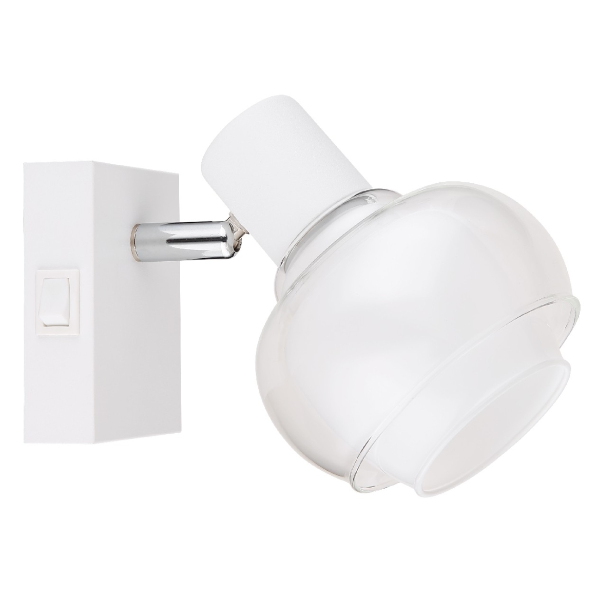 Uronite svoj dom u elegantno svetlo sa našim reflektorom sa E14 grlom! Elegantan dizajn u mat beloj boji i hromu dodaje moderan dodir svakoj prostoriji. Providni i opalni stakleni elementi obezbeđuju ujednačeno i prijatno osvetljenje. Sa praktičnim prekidačem uključite lampu, imate potpunu kontrolu nad svetlinom. Sa dimenzijama od 105x125mm (WxH) i dužinom od 135mm (AL), ovaj reflektor se neprimetno uklapa u razne sobne koncepte. Grlo E14 vam omogućava da odredite boju svetla i jačinu do maksimalne snage od 40 vati.