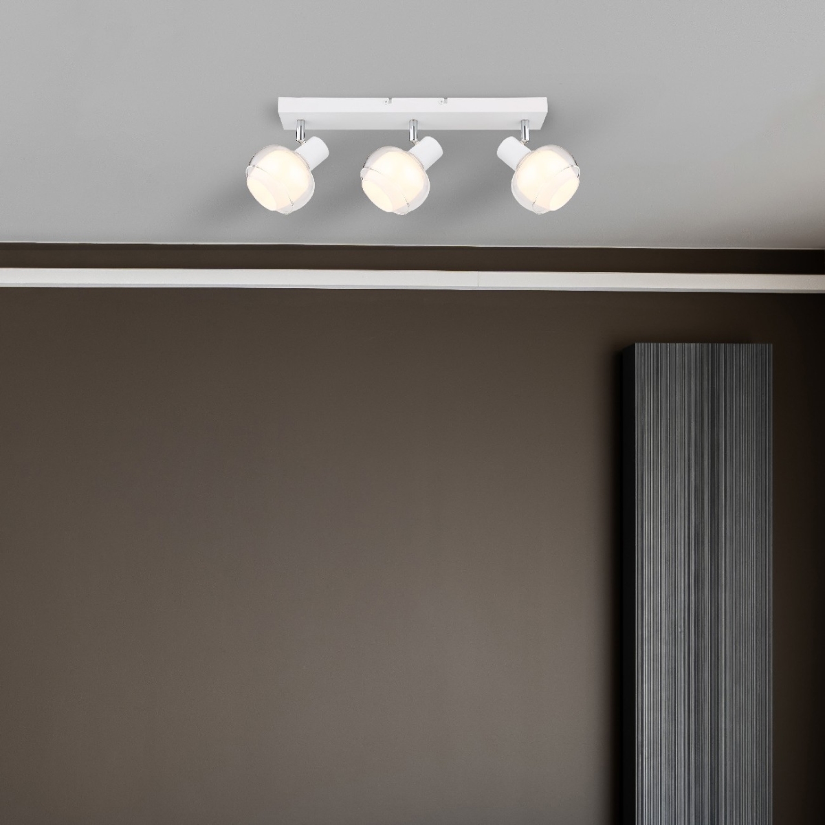 Iskusite lepotu spota sa 3xE14 grla! Sa svojim belim mat metalnim kućištem i elegantnim hromiranim detaljima, ovaj reflektor odiše vanvremenom elegancije. Providna i opalna stakla daju mu plemenit dodir. Dimenzijama od 410x105x135mm savršeno se uklapa u bilo koji sobni koncept. Grlo E14 vam omogućava da odredite boju svetla i jačinu do maksimalne snage od 40W. Postavite ciljane akcente osvetljenja i stvorite prijatnu atmosferu.