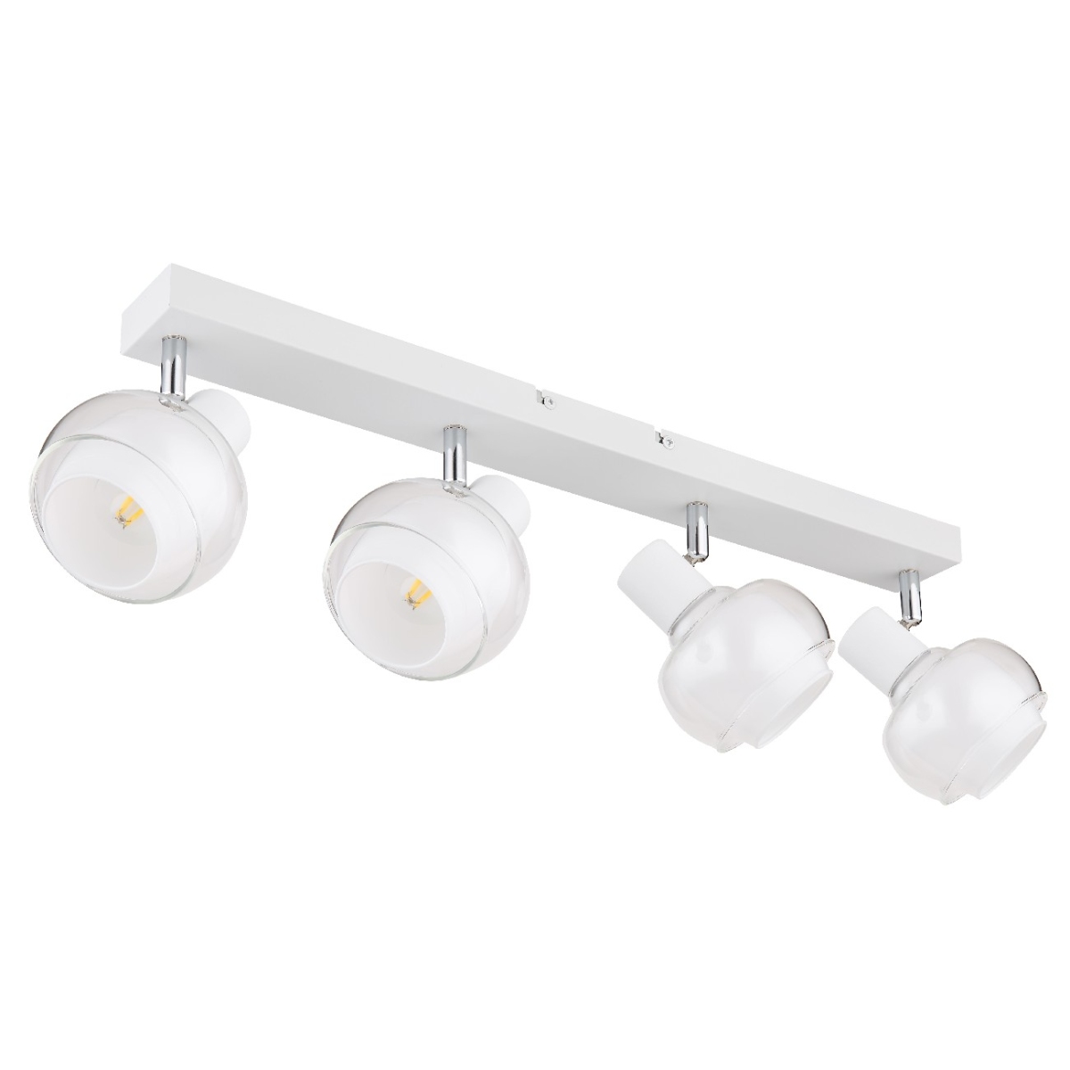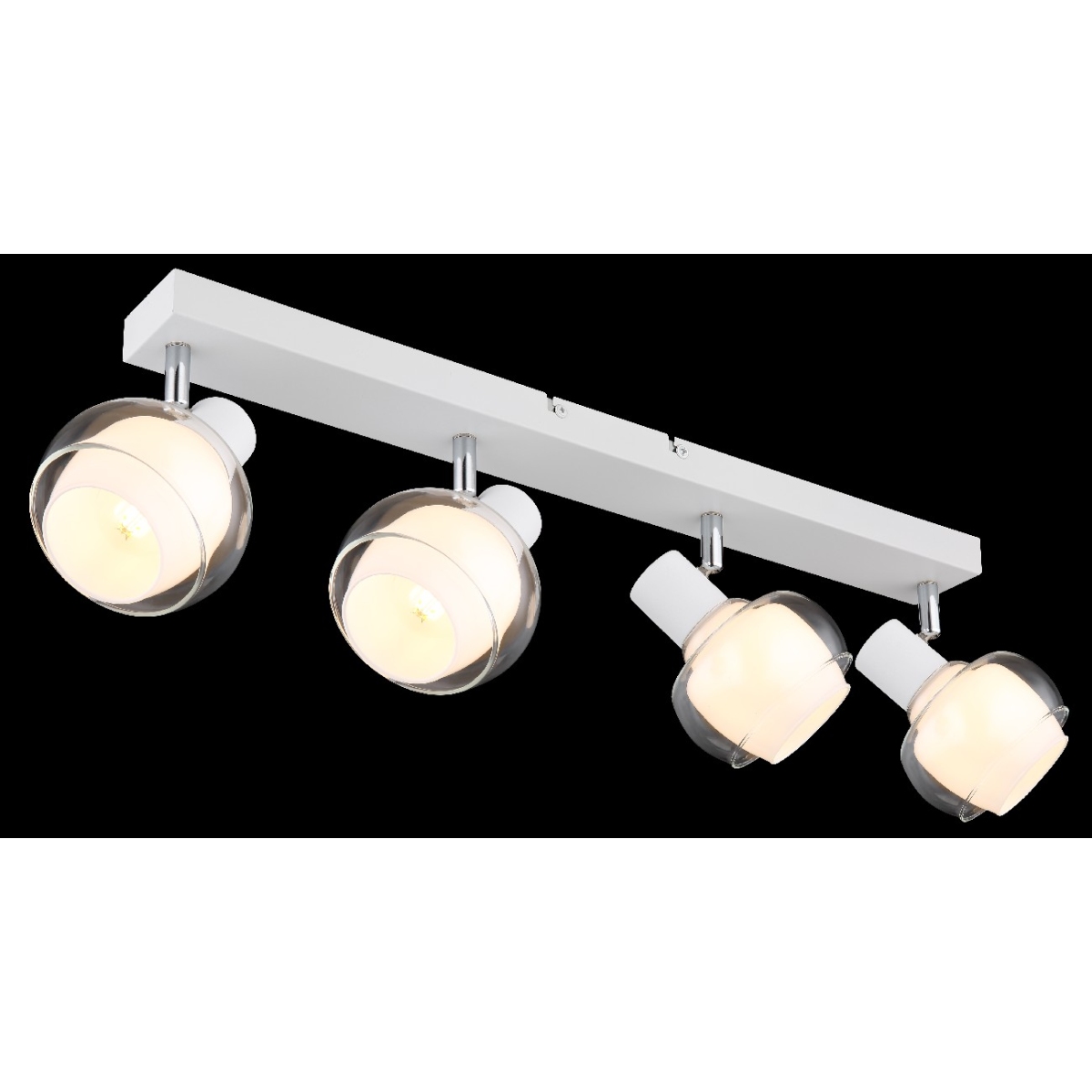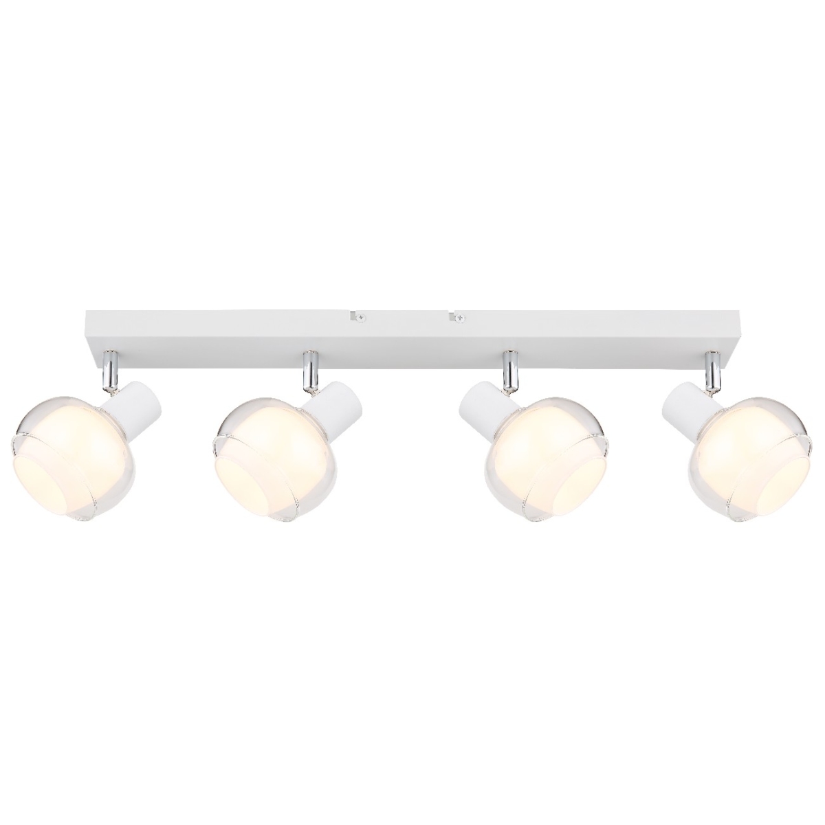 Doživite impresivnu eleganciju reflektora sa 4xE14 grla! Svojim belim mat metalnim telom i sofisticiranim hromiranim akcentima, ovaj reflektor odiše vanvremenskim šarmom. Providno opalno staklo daju mu plemenit dodir. Dimenzijama 560x105x135mm daje impresivn izgled prostoriji. Grlo E14 vam omogućava da odredite boju svetla i jačinu do maksimalne snage od 40 vati. Stvorite gostoljubivu atmosferu i uživajte u igri svetlosti i senke.