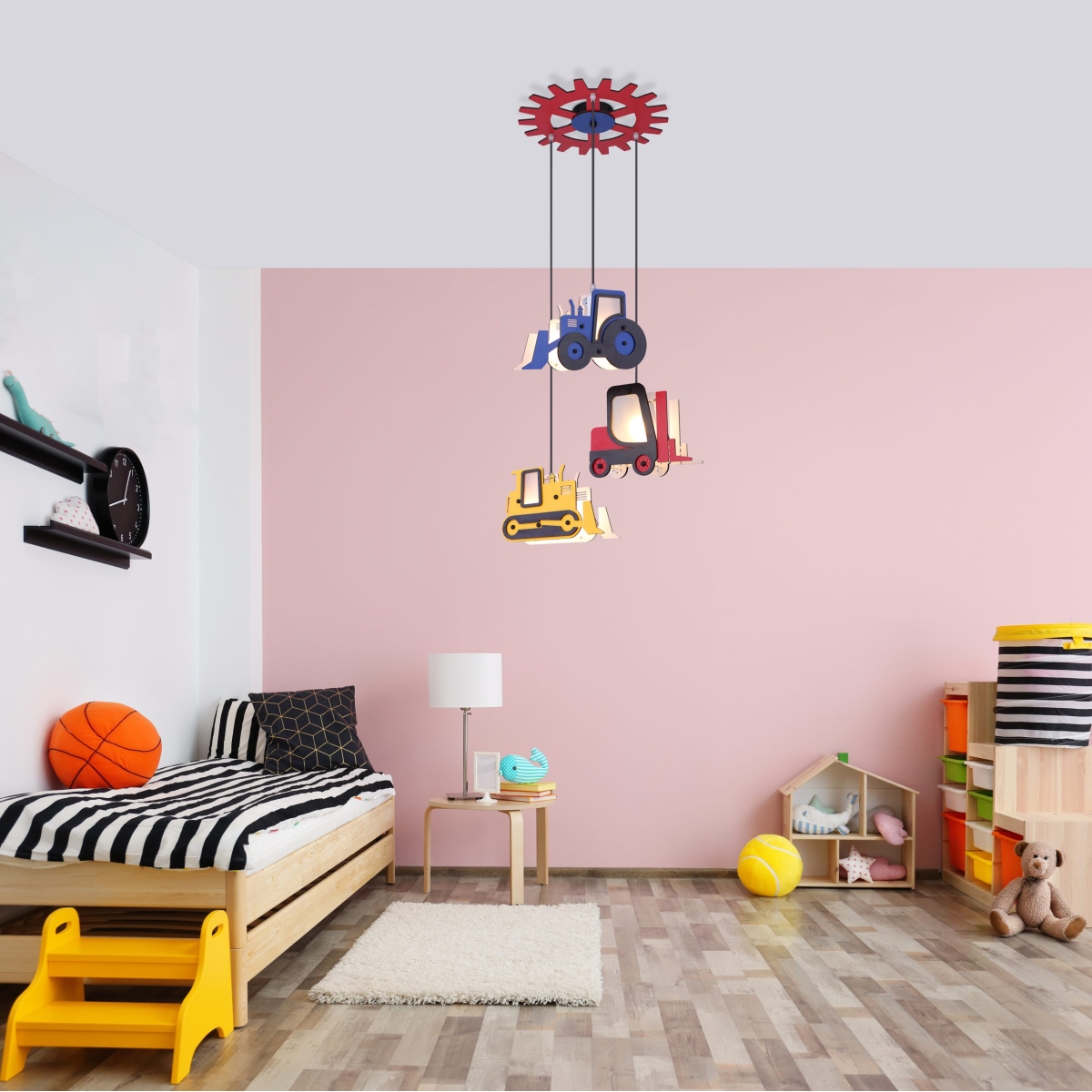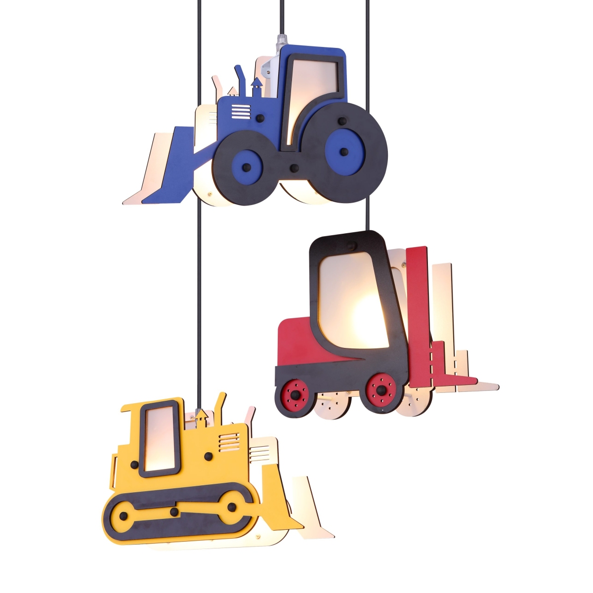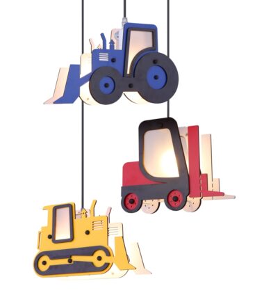 Ova specijalna lampa TOOLIES čini da srca malih farmera brže kucaju! Visilica ima tri odvojena kabla koja vise nadole, na svakom kablu postoji različit oblik, žuti bager, crveni viljuškar i plavi traktor. Sa visinom od 1,2 metra i prečnikom od 55 centimetara, savršeno se uklapa u dečiju sobu. Zbog slobodnog izbora izvora svetlosti (E14/max. 40), možete sami odrediti intenzitet svetlosti i laganu boju ove lampe. Zbog njihove dugovečnosti i uštede energije preporučujemo LED sijalice.