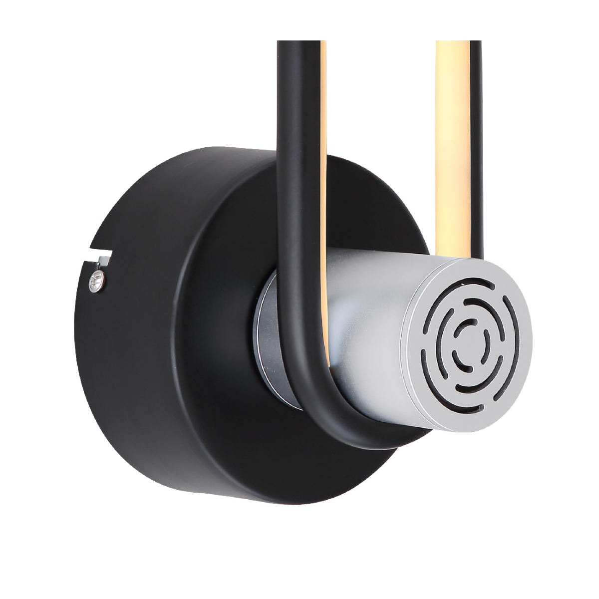 Ova moderna zidna lampa TOPPOLE serije ističe se svojim oblikovanim dizajnom napravljenim od crno-mat aluminijumske i opalne plastike. Zaobljena aluminijumska cev je obezbeđena opalnom plastikom iznutra i vertikalno fiksirana za srebrni 5W Bluetooth zvučnik po odgovarajućem obliku. Uključene LED sijalice zidne lampe dužine 32,5 cm obezbeđuju 400 lumena jako svetlo od 3000 Kelvina (topla bela). Sa ostalim modelima iste serije možete upotpuniti celokupnu sliku svog enterijera i stvoriti elegantan ambijent.