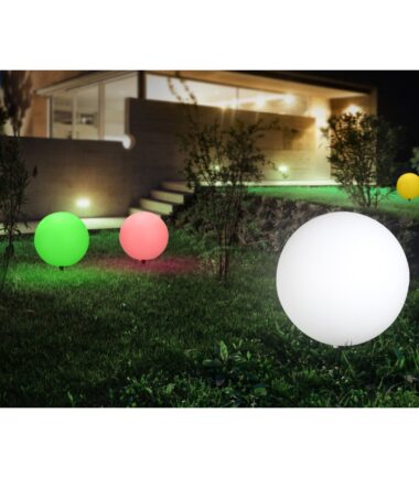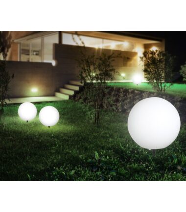 Okrugla lampa TOULA, napravljena od bele plastike, postavljena je pomoću uzemljenja i povezana kablom dugačkim pet metara. Zbog svog lepog izgleda, lagana kugla prečnika 40 cm privlači pažnju u svakoj bašt. Njeno E27 grlo omogućava upotrebu bilo koje sijalice (max. 30W) i njena IP44 zaštitna klasa čini ovu baštensku lampu predodređenom za upotrebu na otvorenom.