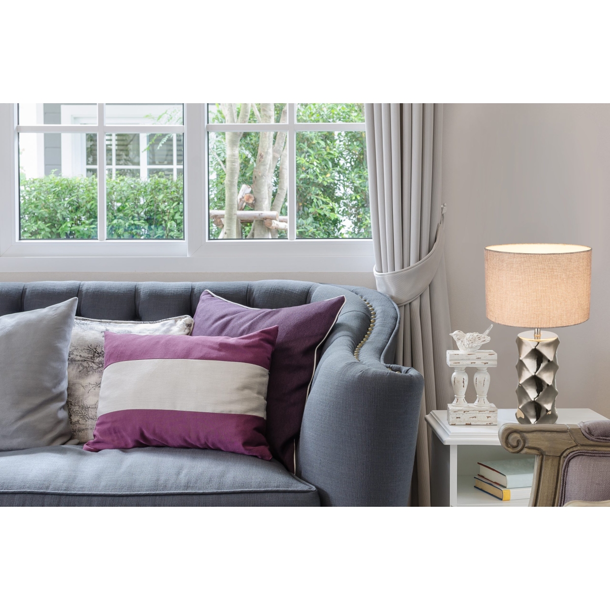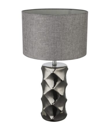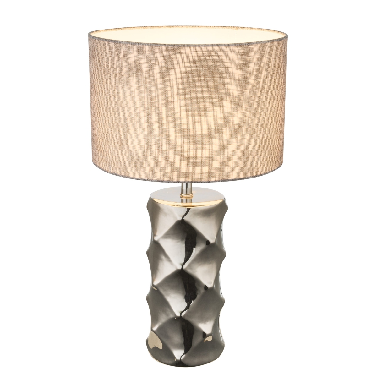Stona lampa TRACEY sastoji se od elegantno oblikovane hromirane baze i klasično dizajniranog sivog tekstilnog abažura. Zbog specijalnog dizajna svetlosne baze, lampa je privlači poglede. Kroz tekstilni abažur, svetlo je zatamnljeno i doživljava se kao veoma prijatno. Stona lampa ima prekidač, tako da lako možete da uključite i isključite lampu. Ima visinu od 48cm, a abažur prečnika 28cm. Zahvaljujući E27 grlu, možete sami odabrati sijalicu (max. 40Watt). Zbog uštede energije i dugovečnosti preporučujemo LED sijalice. Postavite svetle akcente sa ovom divnom stonom lampom.