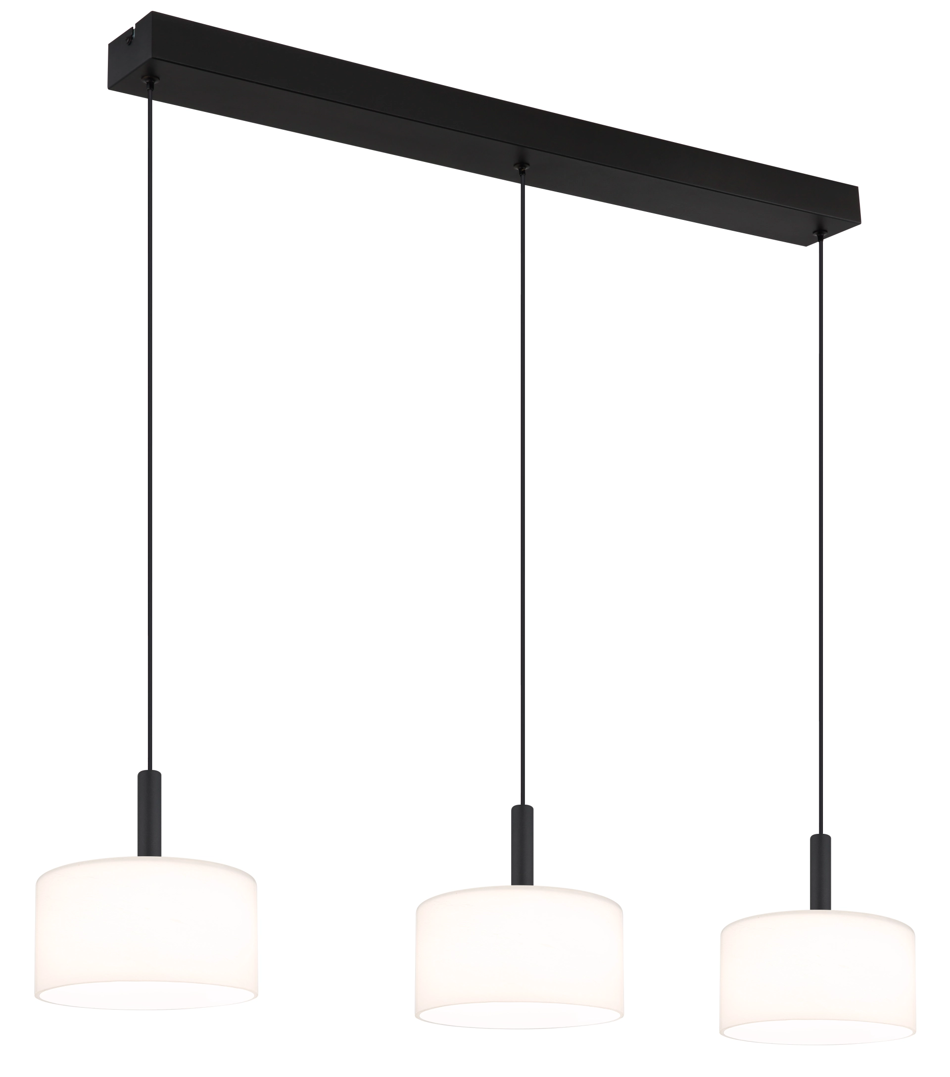 Viseća lampa TRENTON sa tri okrugla, opalna abažura u alabaster izgledu je savršena kombinacija modernog dizajna i funkcionalnosti. Mat crno metalno kućište daje joj savremeni dodir. Sa dužinom od 960 mm i svetlosnim snagama od 1100 lumena, pruža prijatno osvetljenje. Promenljiva temperatura boje od 2700 K do 4000 K omogućava fleksibilno podešavanje raspoloženja osvetljenja. Ova lampa je idealna za trpezarije ili kuhinje i stvara prijatnu atmosferu.