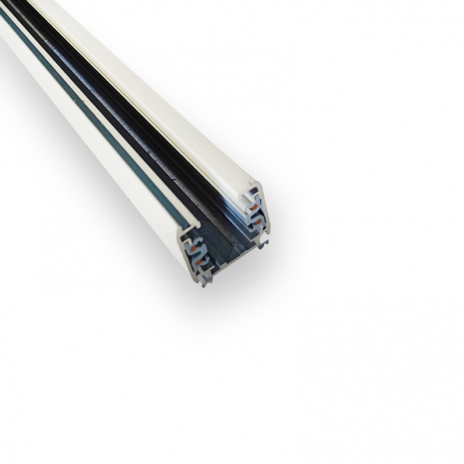 Trofazna šina dužine 2 metra, bez napojnog kraja i zatvarača šine, bele boje.
