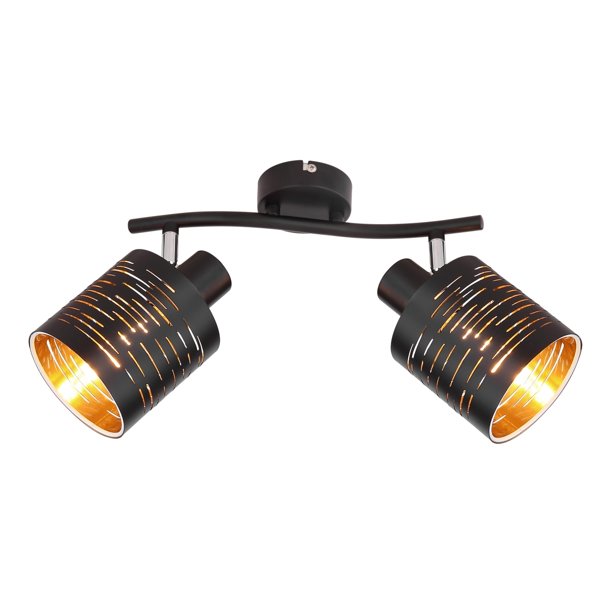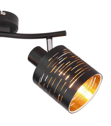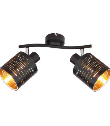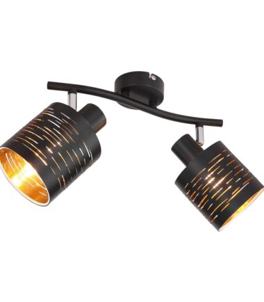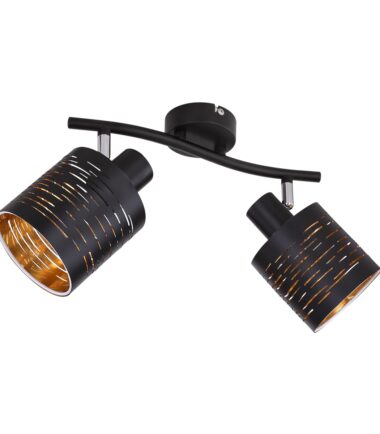 Posebno prelepa plafonska lampa TUNNO pogađa sa dizajnom i prelepim svetlom. Lampa dugačka 29 .6cm ima dva spota, koji su prekriveni ukrasnim detaljima. Tekstilni abažuri, koji su crno-zlatni iznutra, imaju dva E14 grla, koja vam omogućavaju da sami odredite osvetljenje, a samim tim i intenzitet svetlosti i laganu boju (max. 15W). Zbog njihove uštede energije i dugovečnosti preporučujemo LED sijalice. Drugi modeli iste serije mogli bi da upotpune sliku u vašim sobama.