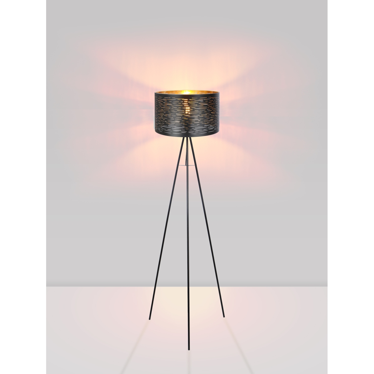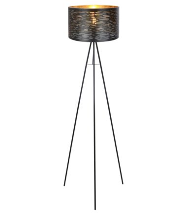 Sa ovom tronogom, izuzetno modernom podnom lampom u crnoj boji, iz serije TUNNO, postavljeni su sjajni akcenti. Koristi se, na primer, u dnevnoj sobi ili kancelariji, ovaj model, sa svojim ukrasnim detaljima, prečnika 38 cm i zlatnom bojom unutra, može doprineti udobnom okruženju. Standardni prekidač za uključivanje/isključivanje i 1,8 metara dugačak kabl za povezivanje čine ih fleksibilnim. Ima E27 grlo, koja vam omogućava da slobodno odaberete sijalicu. Preporučujemo LED sijalice, zbog njihove uštede energije i dugovečnosti.