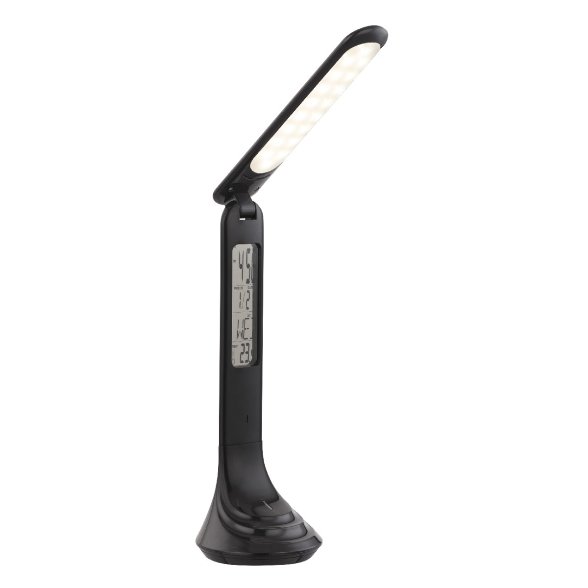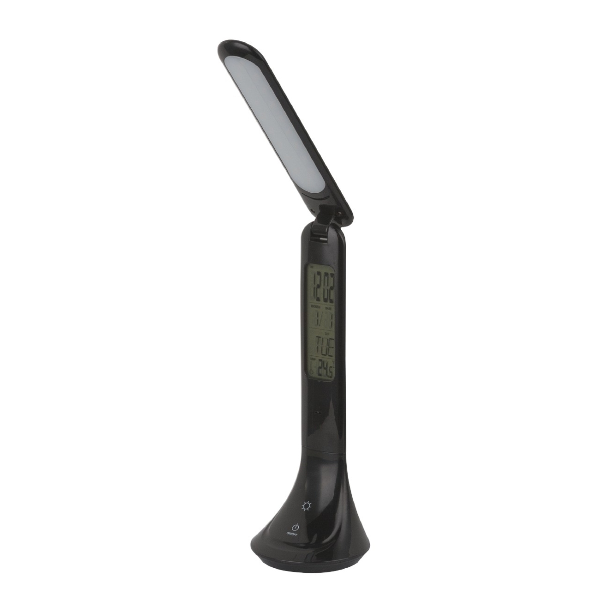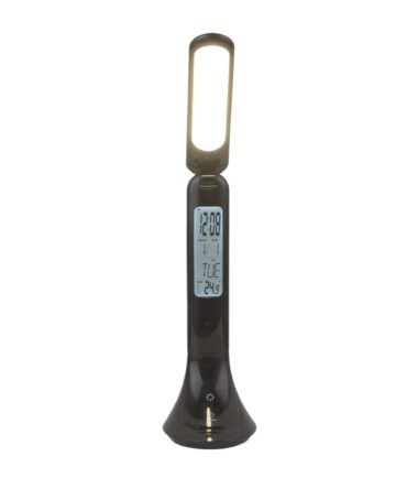 Ova sjajna stona lampa ističe se svojom funkcionalnošću. Svetlo se može regulisati u tri faze putem ugrađenog dimera osetljivog na dodir. Ugrađeni displej u crnom plastičnom kućište vam nudi mogućnost da pročitate ne samo vreme već i datum. Funkcija budilnika zaokružuje servisni paket. Osvetljenje ekrana može da se radi preko posebnog prekidača. Stona lampa ima integrisane, punjive baterije koje ga čine mogućim za korišćenje izvan glavnih.