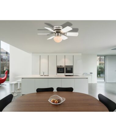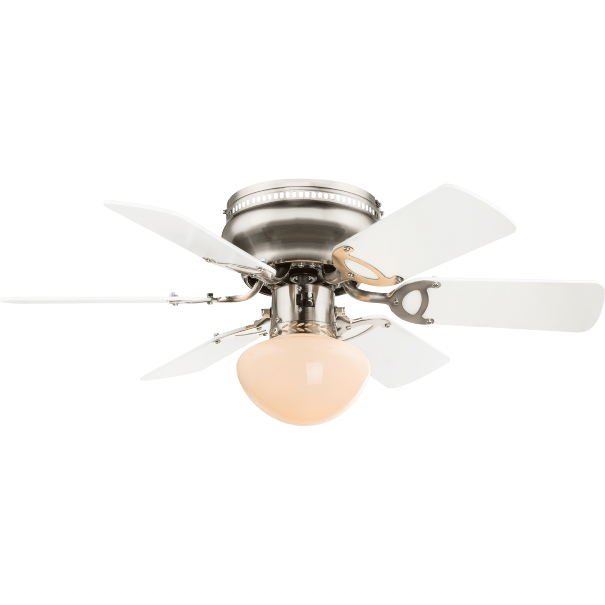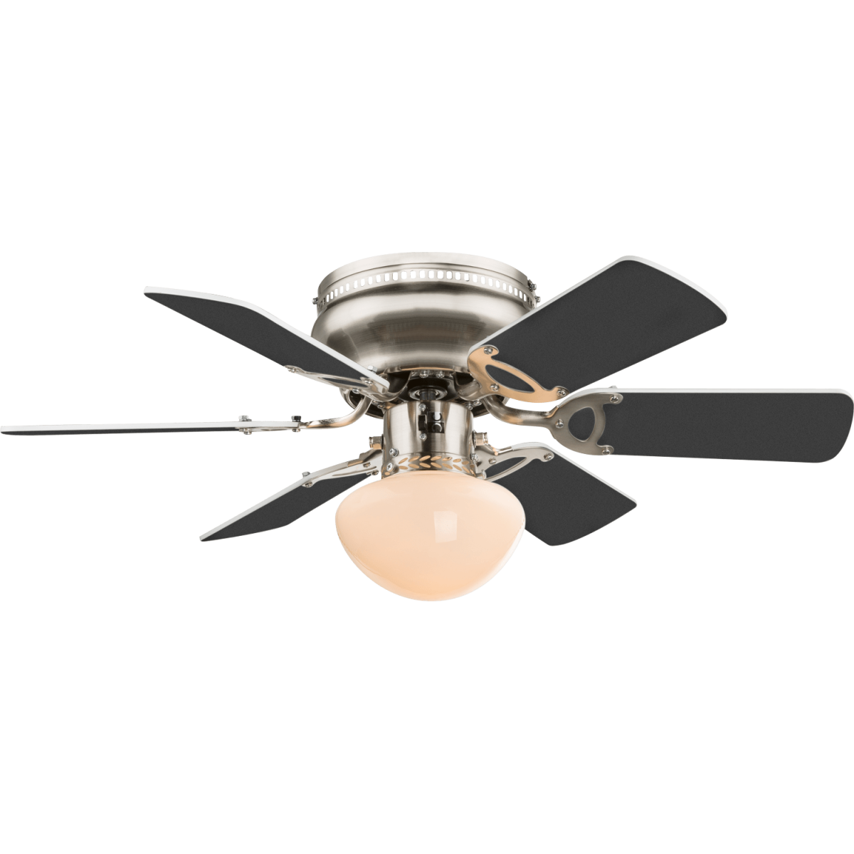 Zbog klasičnog dizajna sa rustičnim dodirom, ovaj ventilator je savršen za postavljanje akcenata. Sve komponente ovog ventilatora se savršeno usklađuju jedna sa drugom. Uz grlo E27 možete slobodno odabrati odgovarajuću sijalicu (max. 60W). Šest reverzibilnih lopatica rotora u beloj boji ili boji grafita zaokruženo je u celini. Ventilator (prečnika 76 cm) ima prekidač na povlačenje i može se podesiti na tri nivoa. Može se koristiti i leti i zimi i ima maksimalnu snagu motora od 60W.