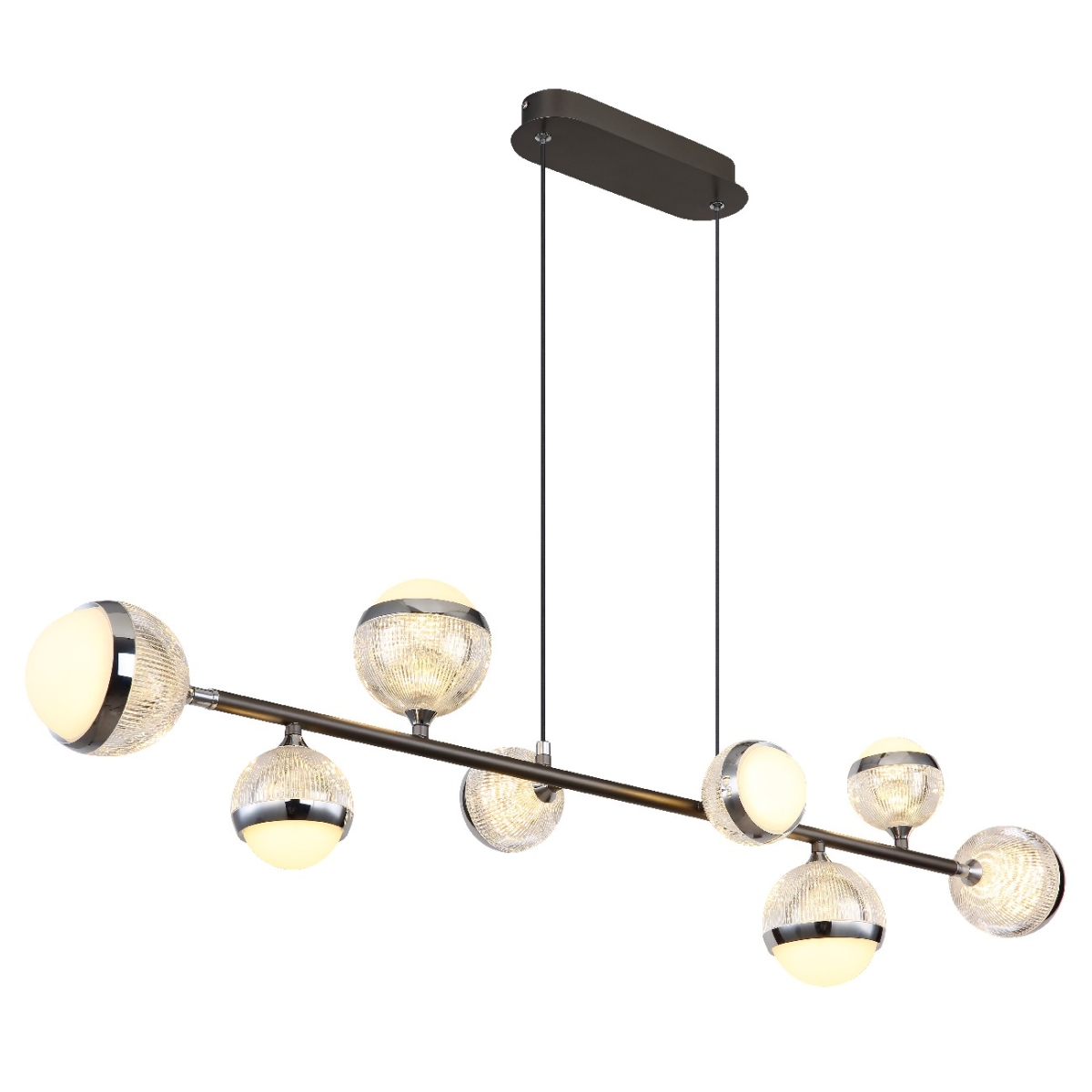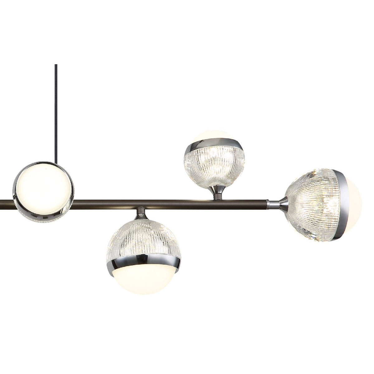 Visilica serije UNTSY napravljena od brušenog titanijuma i providnog aktila koji lepo reflektuje svetlost. Aluminijum je hromiran. Kabl izrađen od PVS-a crna boja. Lampa ima mogućnost zatamnjivanja i može se kontrolisati preko zidnog prekidača. Boje se mogu fiksirati i lampa ima funkciju memorije, noćno svetlo, kao i daljinski upravljač ( baterije 2AAA nisu uključene). Visina se može podesiti. Dimenzije su: DxŠxV: 1090x240x1200 mm i sastoji se od kugli prečnika 4×12 cm i 2×10 cm. Lampu napaja LED dioda snage 56W i napona 230 volti. Temperatura boje se može podesiti od 2700K do 6000K. Sa svojom jedinstvenom kombinacijom modernog dizajna i visokokvalitetnih materijala, sigurno će provlačiti poglede u svakoj prostoriji.