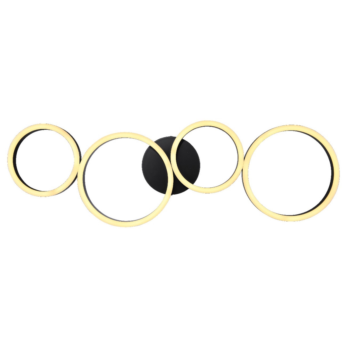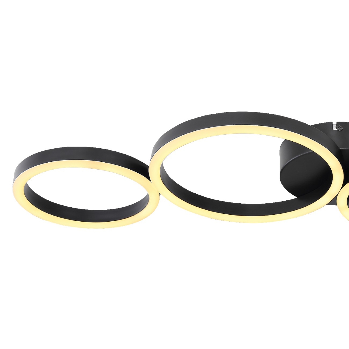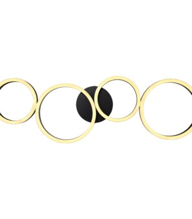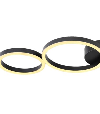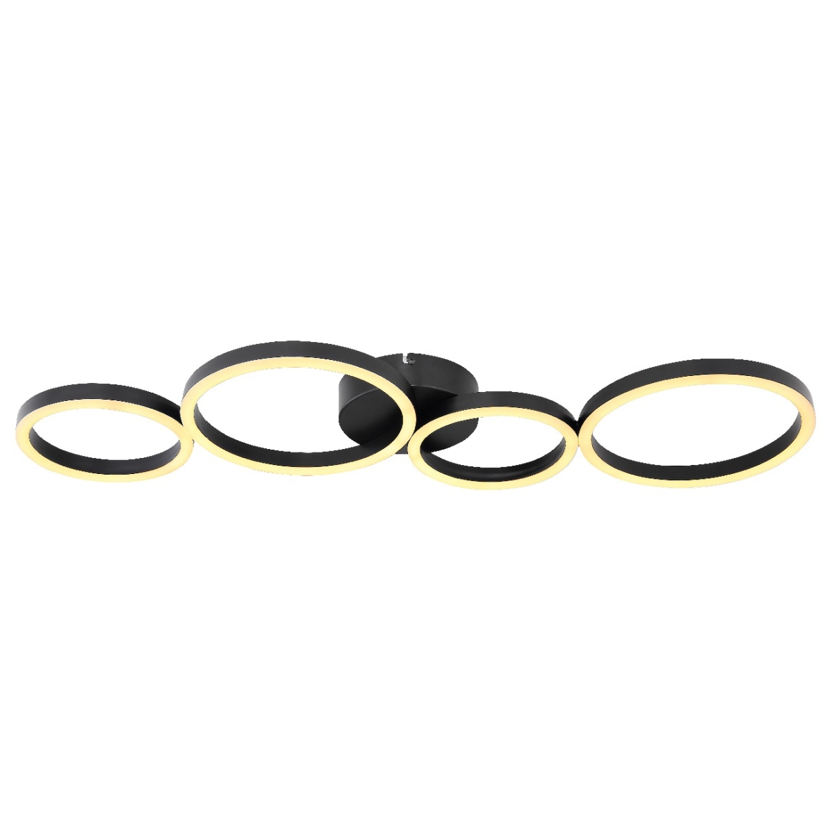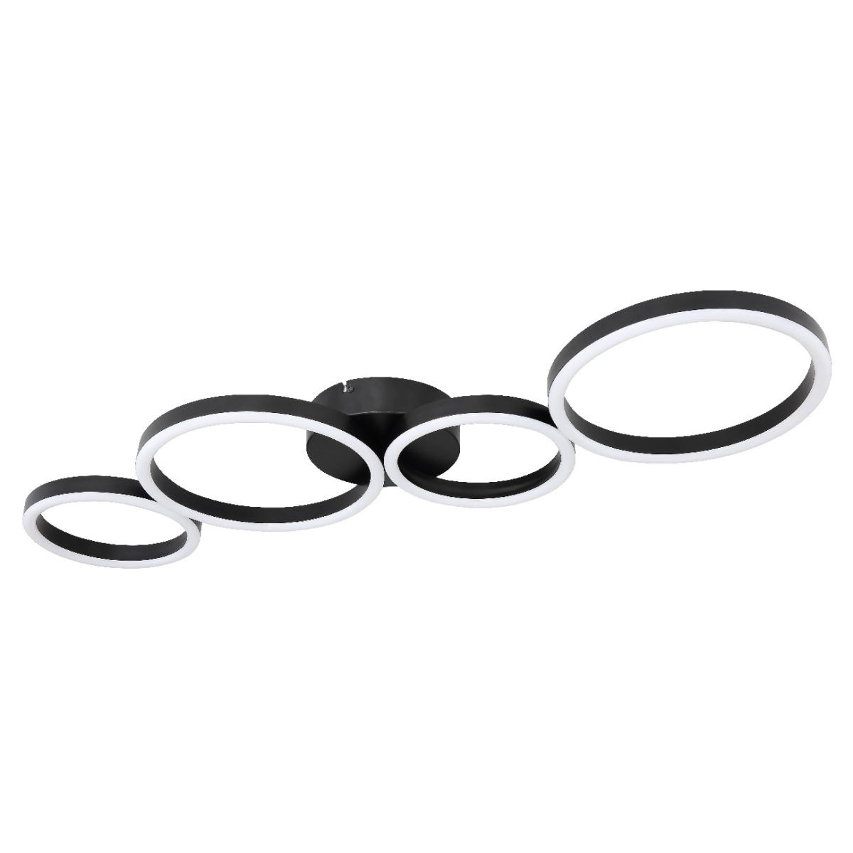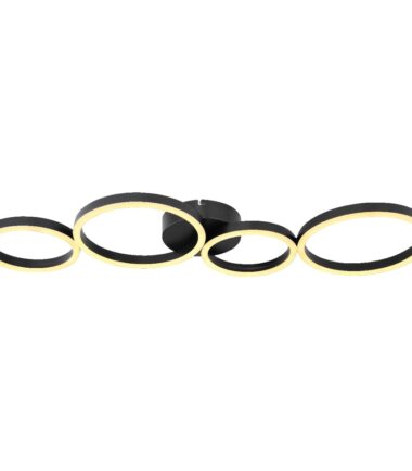 Plafonska lampa VENOSA u savremenom dizajnu ističe se svojim jedinstvenim izgledom. Četiri crna metalna prstena sa plastičnim poklopcem i već instaliranim LED panelom (1500 lumens/light colour 3000 Kelvin) će vas sigurno inspirisati (L: 88.5cm, W: 33cm, H: 6.5cm). Savet – ovaj sjajan model dostupan je i u beloj boji.