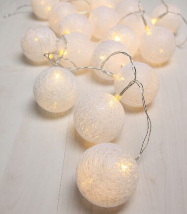 Zbog abažura od belog pamuka, ovaj niz lampi privlači pažnju svih. Na dužini od 315 cm postavljeno je ukupno 20 sijalica koje pružaju prijatno toplo belo svetlo. Zahvaljujući prekidaču, moguće je i uključivanje i isključivanje lampe.