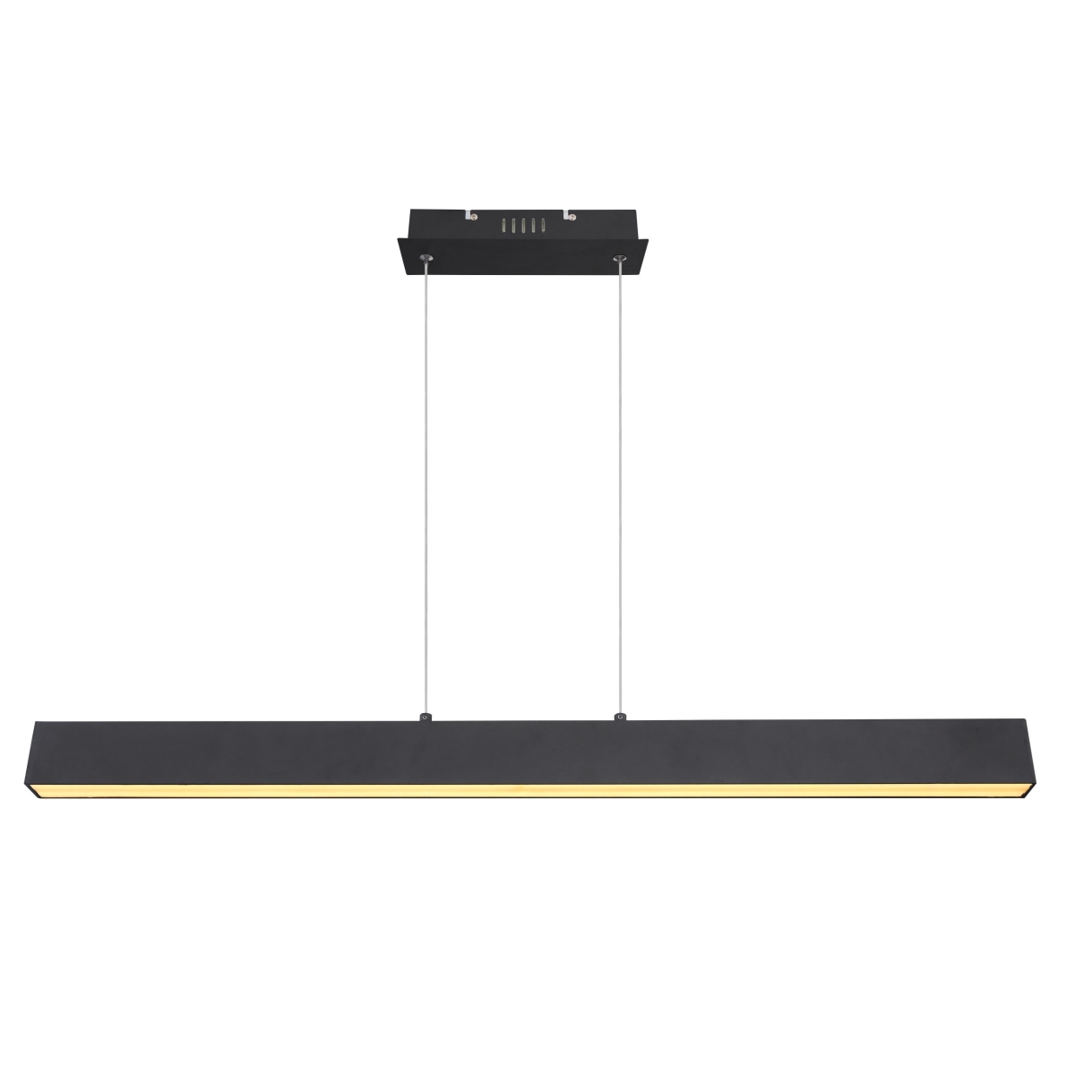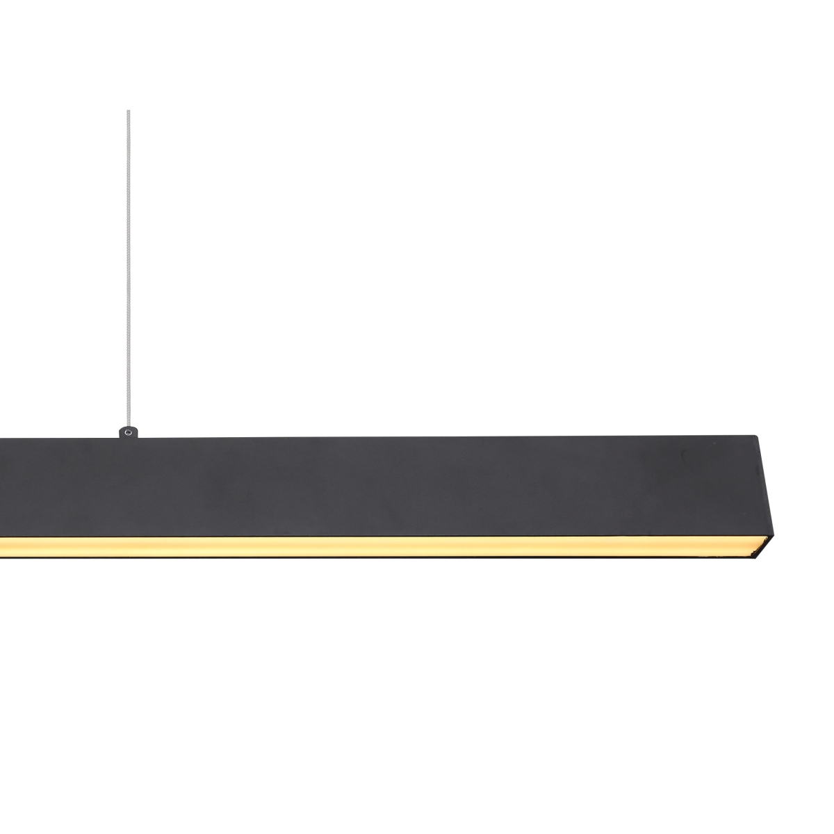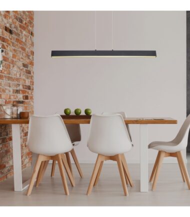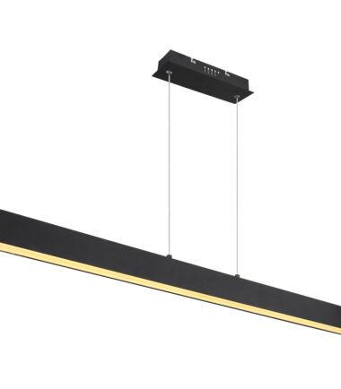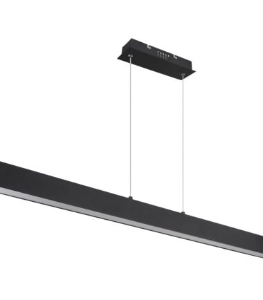 Mat crna visilica napravljena od metala sa plastičnom abažurom u opalno beloj boji kupa vaš dnevni ili trpezarijski prostor kroz uključene sijalice (3000 Kelvina) u udobnom, toplom belom svetlu. Pošto visilica u obliku snopa može da se zatamni u 3 koraka preko prekidača za zid, možete prilagoditi atmosferu sobe po vašem ukusu. Viseća lampa ima funkciju memorije i pamti vrednost poslednjeg podešavanja. Uska greda od 8 cm privlačiće poglede preko vašeg trpezarijskog ili stola u dnevnoj sobi zbog dužine 121 cm.