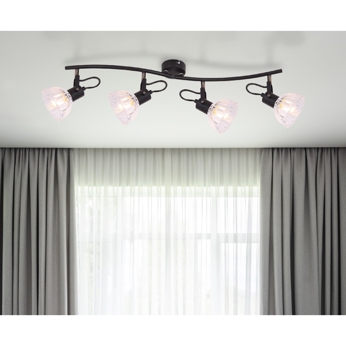 Reflektor na plafonu je izuzetno fleksibilan i nudi mogućnost osvetljavanja sobe. Čak i veće površine mogu biti osvetljene bez ikakvih problema. Svaki reflektor plafonske lampe može se pomerati pojedinačno, čime se vaše sopstvene potrebe mogu pojedinačno ispuniti. Na taj način se brzo nalaze optimalni uslovi osvetljenja i lampa može efikasno da ispuni njenu upotrebu. Kompletan paket je zaokružen tankim i klasičnim dizajnom. Dužinom od 70cm može da se koristi bilo gde i ulepšava vaša četiri zida. Zbog slobodnog izbora izvora svetlosti (E14 / max. 40W) možete sami odrediti svetli intenzitet i boju svetla ove unutrašnje lampe. Zbog njihove dugovečnosti i uštede energije preporučujemo LED sijalice. Ostali modeli iste serije modela mogli bi da upotpune sliku u vašoj okolini.