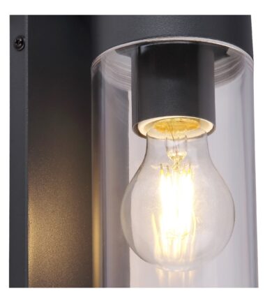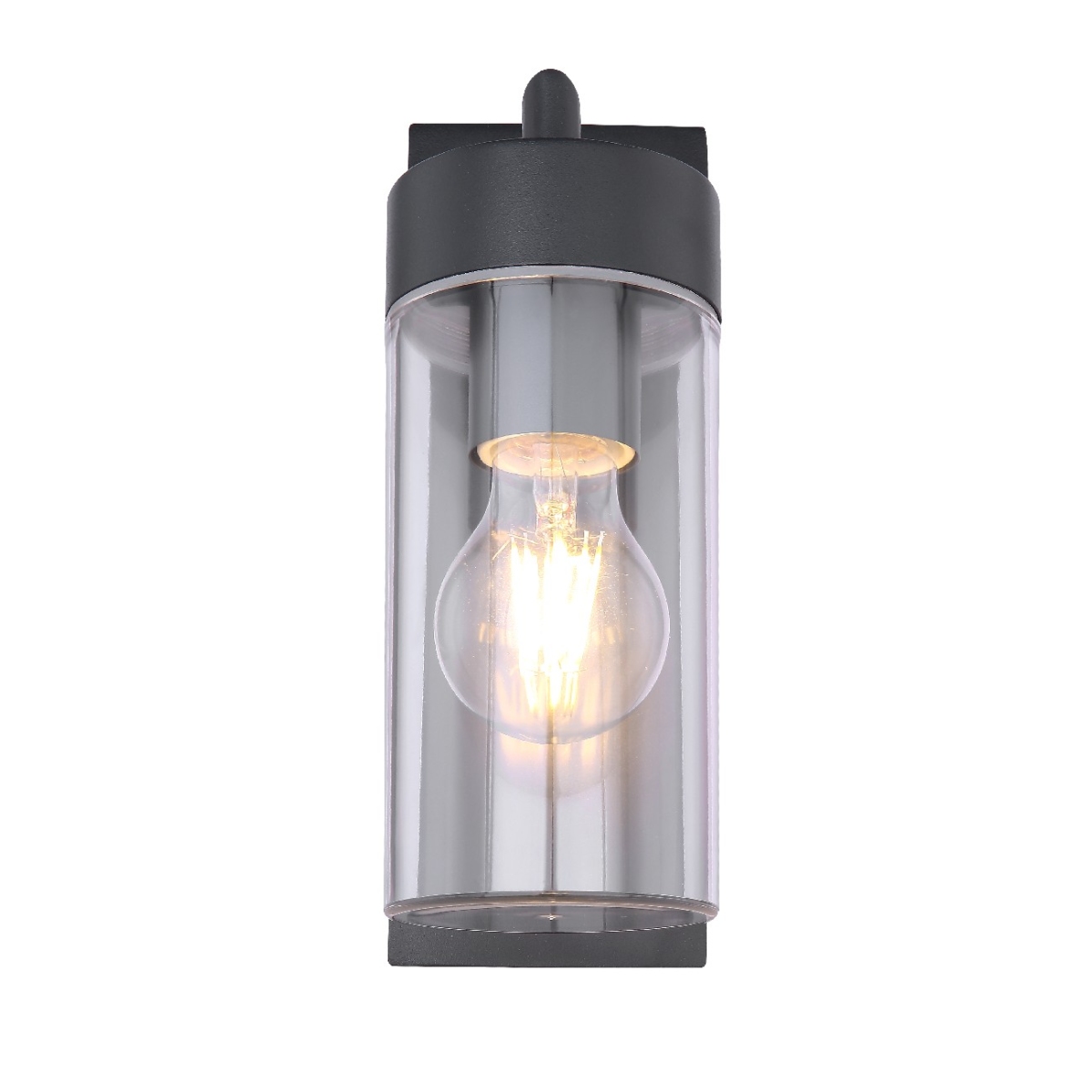 Ako tražite modernu aluminijumsku lampu u boji antracita za zid, onda ćete biti zadovoljni ovim modelom. Ima cilindrični plastični poklopac i sija od zida nadole. Zbog IP44 stepena zaštite, svetiljka je optimalno zaštićena od vetra i vremenskih prilika. Lampa je dimenzije: WxH 8.9×25 cm i opremljena je E27 grlom, tako da slobodno možete izabrati sijalicu do 15 W.