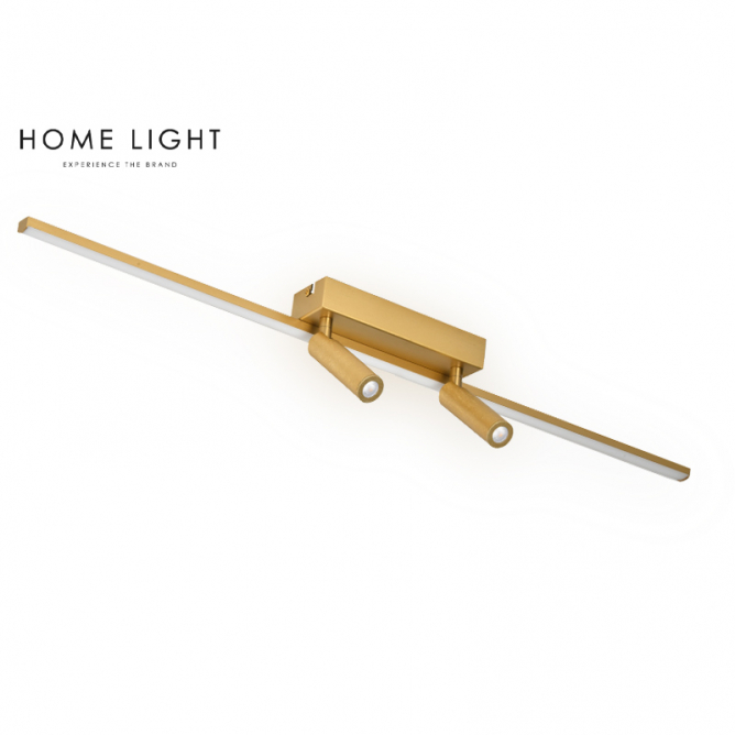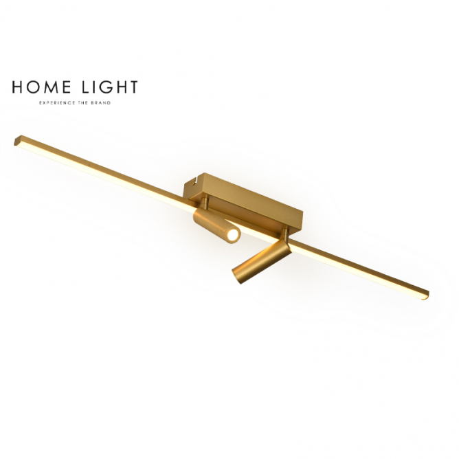 Inovativna plafonska spot svetiljka sa interesantnim rasvetnim rešenjem. Izrađena je od aluminijuma u boji brušenog zlata sa akrilnim delovima. Ova svetiljka ima centralno linijsko svetlo, snage 22w plus dodatna dva spota, svaki snage 3w. Emituje toplo belu svetlost ukupne snage 28w što je dovoljno svetla za stambenu prostoriju prosečne kvadrature. Može se koristiti u praktično svim prostorijama u stanu ili u enterijeru nekog poslovnog prostora.