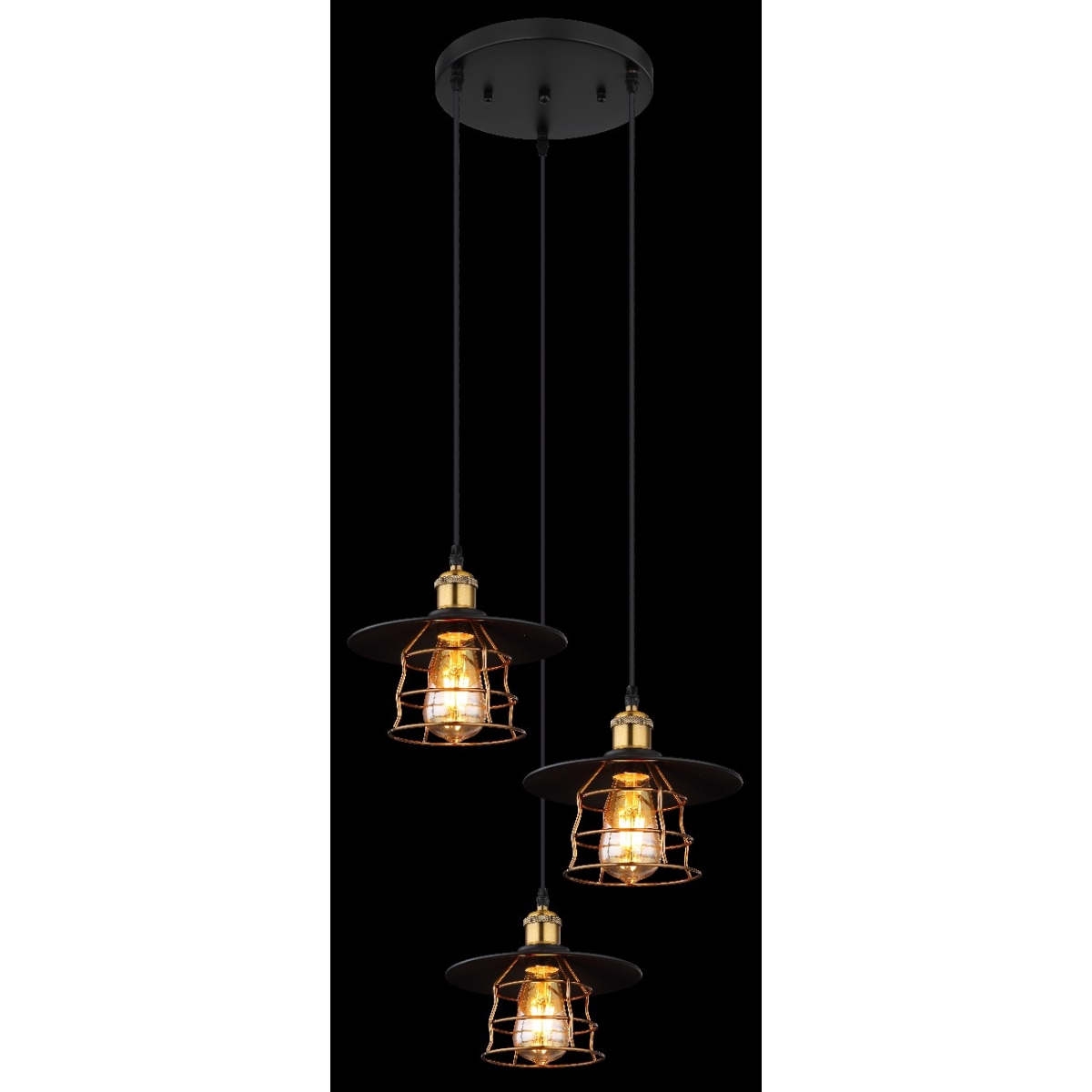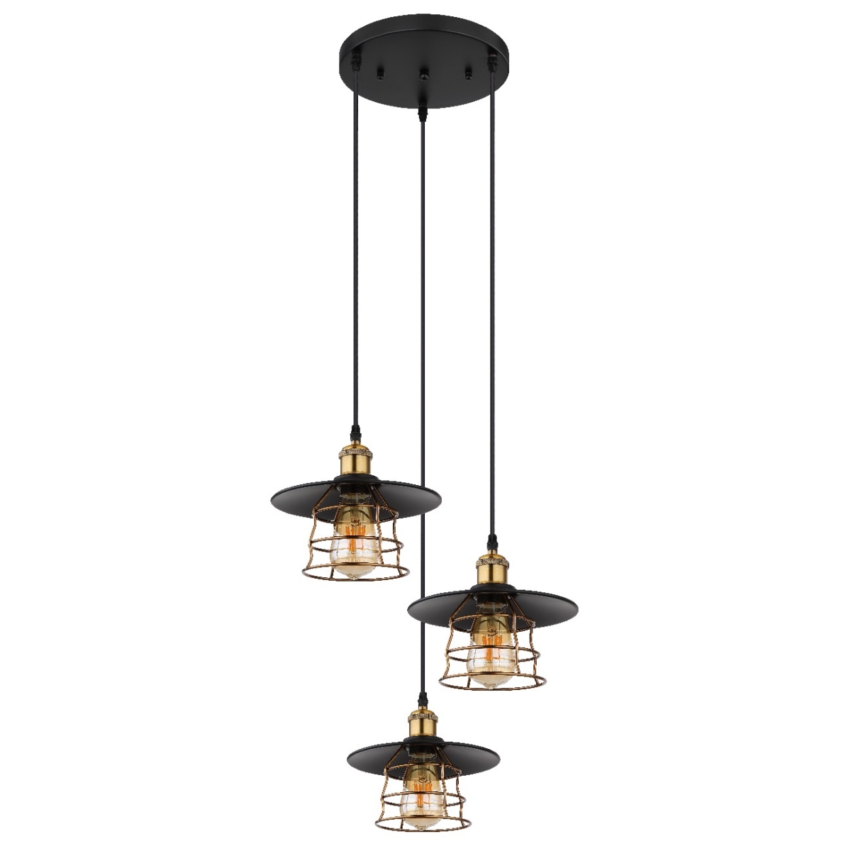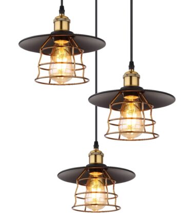 Ova prelepa visilica serije VIEJO inspiriše sjajnim dizajnom. Od okrugle plafonske osnove u mat crnoj boji pružaju se tri crna kabla u različitim dužinama do 1,5 metara, svaki do E27 grla, koja su opremljena tradicionalnim abažurima (Ø22cm) u mat crnoj boji, sa rešetkama od mesinga. Grla E27 vam omogućavaju da slobodno birate sijalice, do maksimalne snage od 60 vati. Drugi modeli ove serije vam omogućavaju da savršeno upotpunite svoj dnevni boravak.