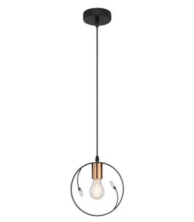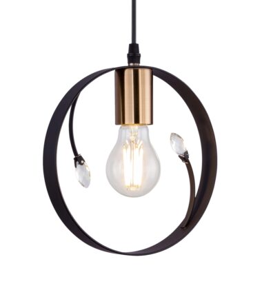 Visilica napravljena od crnog metala (Ø 20cm) sa providnim plastičnim kristalima ima jedinstven dizajn. Okvir ove lampe koja prodire 150 centimetara u prostoriju okružen je crnim metalnim prstenom, koji se miluje sa dve grane kristalnim pupoljcima. Zbog slobodnog izbora izvora svetlosti (E27/max. 60W), možete sami odrediti svetli intenzitet i laganu boju ove unutrašnje lampe. Zbog njihove dugovečnosti preporučujemo LED sijalice. Kroz druge modele ove serije dodatno možete ulepšati sliku svog životnog prostora.
