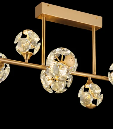 Plafonska lampa VIRINA kombinuje luksuzni dizajn sa visokokvalitetnom tehnologijom i predstavlja pravi ukras u svakoj prostoriji. Ravna šipka napravljena od metala zlatne boje nosi stilske kuglice ukrašene providnim K9 kristalima. Ovi kristali elegantno hvataju svetlost, stvarajući zapanjujući odraz svetlosti koji kupa prostoriju u toplom, privlačnom sjaju. Sa dužinom od 1010 mm i širinom od 345 mm, lampa je idealna za veće prostorije kao što su dnevne sobe ili trpezarije. Integrisana LED tehnologija pruža izvanredan lumenski snaga od 7136 lumena i prijatnu boju svetlosti od 3000 K, što istovremeno obezbeđuje udobno i funkcionalno osvetljenje. Plafonska lampa VIRINA kombinuje elegantan dizajn sa visokim svetlosnim snagama i postavlja stilske akcente u vašem domu. Njihovi metalni akcenti zlatne boje i providni kristali čine ih luksuznim akcentom u svakoj prostoriji.