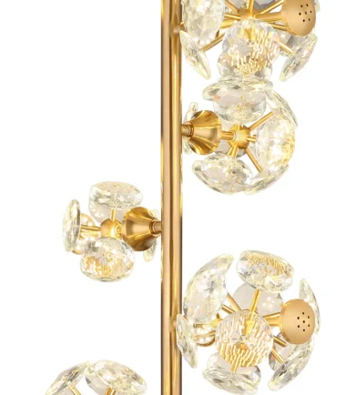 Podna lampa VIRINA kombinuje luksuzni dizajn sa odličnom tehnologijom osvetljenja i postavlja stilske akcente u vašoj sobi. Ravno telo od metala boje zlata nosi nekoliko kuglica ukrašenih providnim K9 kristalima. Ovi kristali reflektuju svetlost na fascinantan način, stvarajući blistavo, elegantno osvetljenje. Sa dužinom od 280 mm i širinom od 360 mm, lampa je idealna za male do srednje velike prostorije kao što su dnevne sobe ili kutci za čitanje. Integrisana LED tehnologija pruža impresivan lumenski izlaz od 4579 lumena i prijatnu boju svetlosti od 3000 K, stvarajući toplu, privlačnu atmosferu. Praktični nožni prekidač u kablu obezbeđuje lako rukovanje. Podna lampa VIRINA kombinuje moderan dizajn sa visokom funkcionalnošću i postaje luksuzni vrhunac koji svakoj prostoriji daje posebnu atmosferu i pruža nepogrešive svetlosne trenutke.