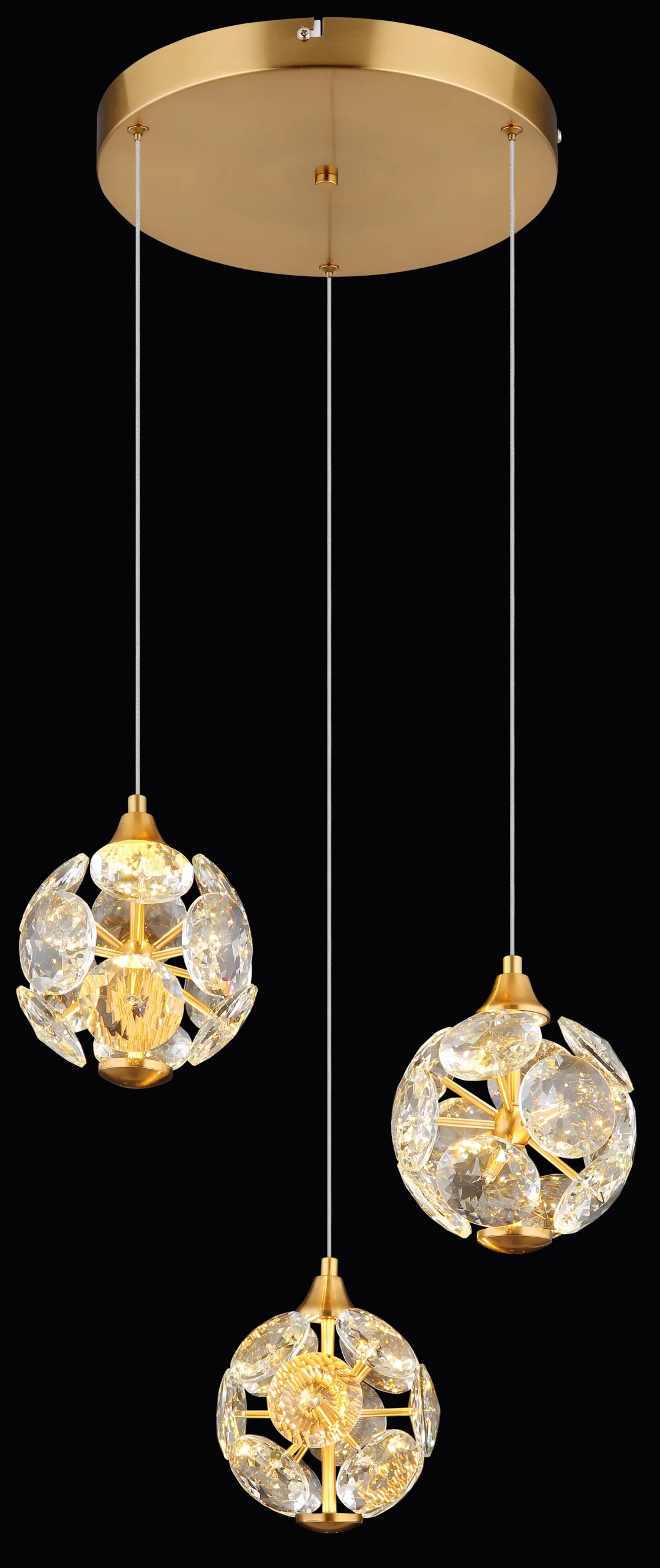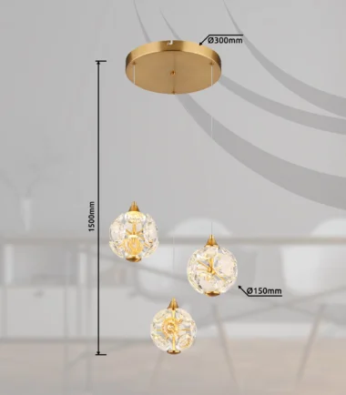 Okrugla viseća lampa je elegantan i moderan element osvetljenja za svaku prostoriju. Telo viseće lampe je napravljeno od visokokvalitetnog metala zlatne boje i daje lampi plemenit izgled. Vizir je napravljen od providnih K9 kristala za glamurozan izgled. Sa prečnikom od 420 mm i snagom od 24 W, viseća lampa proizvodi jaku svetlost sa izlazom od 2000 lumena i toplom belom temperaturom svetlosti od 3000 K. Viseća lampa ima tri držača koji obezbeđuju ravnomernu raspodelu svetlosti i stvaraju atmosfersku atmosferu. Ova okrugla viseća lampa nije samo funkcionalni element osvetljenja, već i dekorativni detalj koji ulepšava svaku prostoriju. Sa svojim modernim dizajnom i visokokvalitetnim materijalima, savršena je za stilski dom.