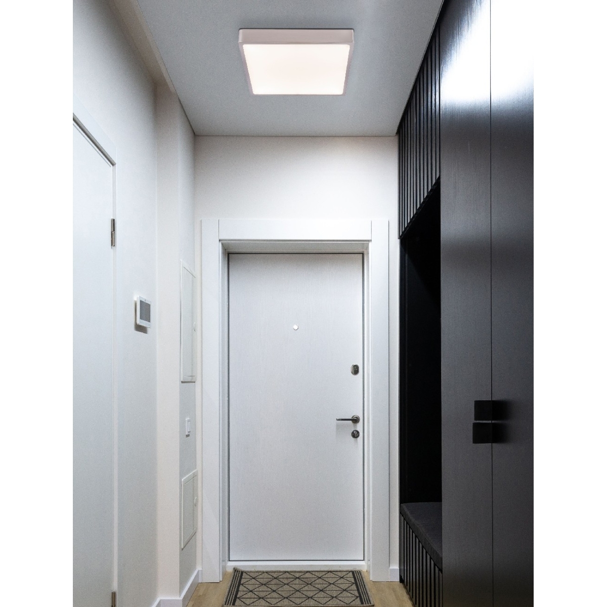 Ova četvrtasta plafonska lampa (22 x 22 cm) VITOS serije ubeđuje pre svega svojom univerzalnom primenom. Opalno akrilno staklo u sredini okruženo je nikl-mat ivicom od livenog aluminijuma. Lampa se može zatamniti do 2520 lumena, ima uključenu LED sijalicu 28W i daje prijatnu boju svetla neutralno bela od 4000 Kelvina. Sa ostalim modelima ove serije, možete dodatno ulepšati sliku svog životnog prostora.