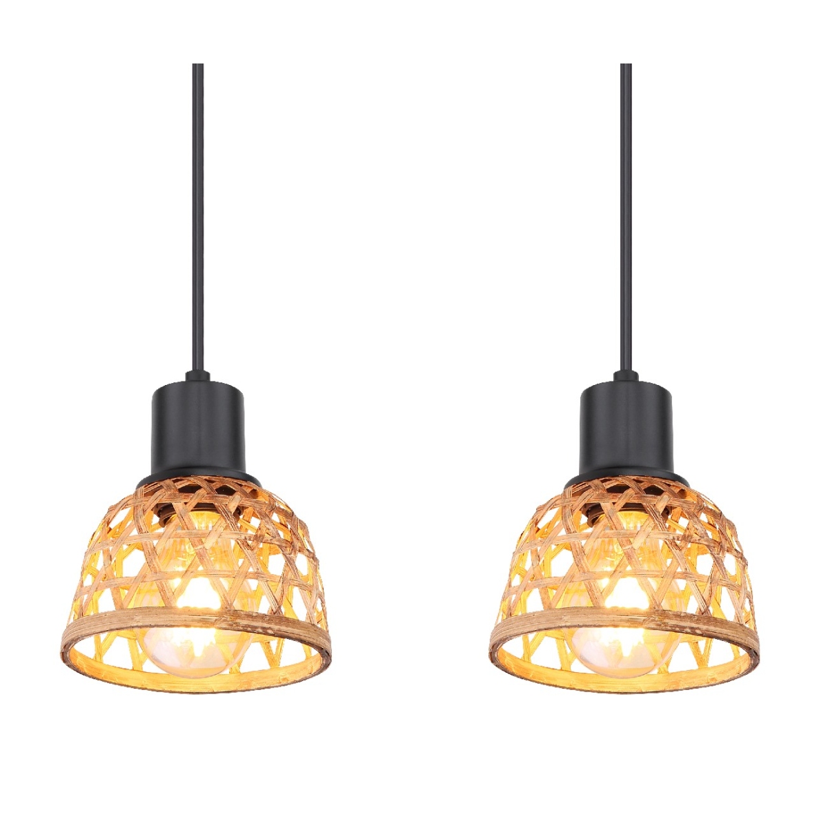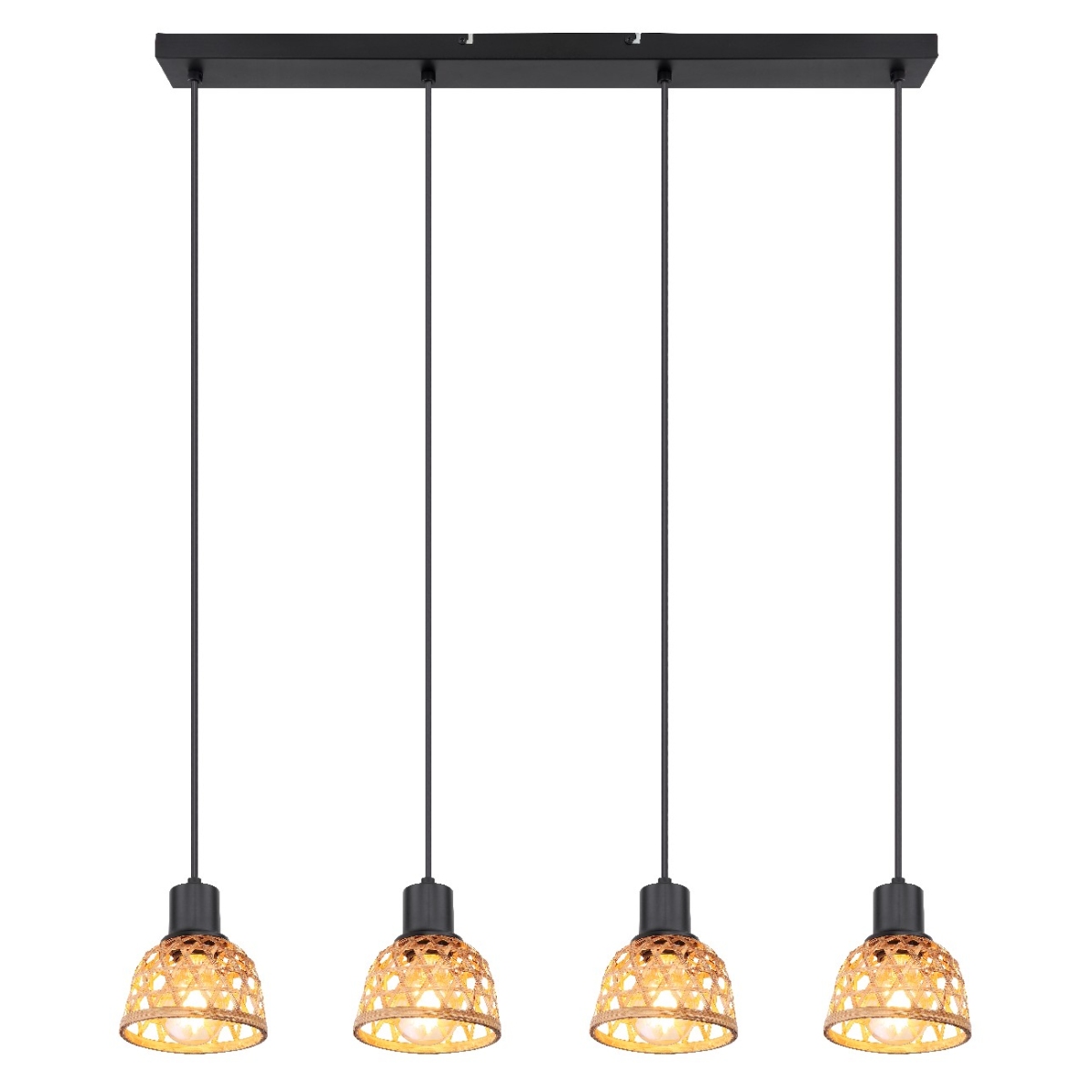 Ova visilica iz serije WENNA divno se uklapa u ambijent različitih stilova života. Lampa dužine 72 cm sastoji se od četiri grla E27 obložena crnim mat metalom, koja imaju oblikovane mrežaste abažure od bambusa i vise do 120 cm od plafona na crnim kablovima. One mogu biti opremljene odgovarajućim sijalicama po vašem izboru, što vam omogućava da pojedinačno odredite boju svetla i jačinu. Sa drugim modelima iste serije možete upotpuniti celokupnu sliku u enterijeru.