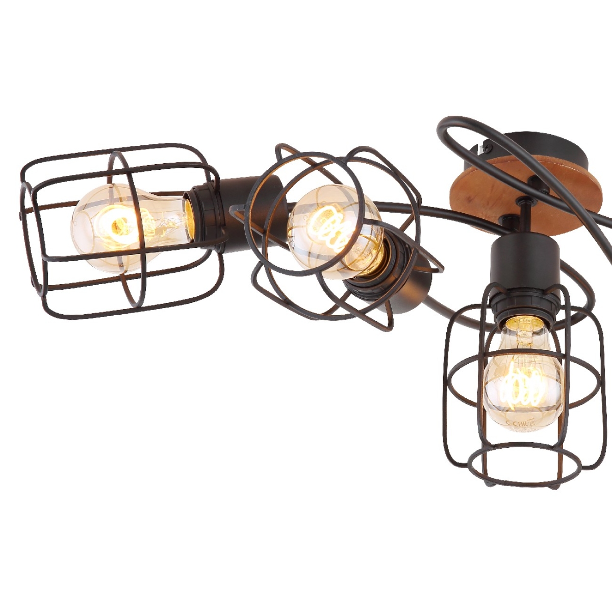 Ova plafonska lampa iz serije WILLA (68×40 cm) ističe se svojim jednostavnim dizajnom napravljenim od crnog metala. Sastoji se od okrugle drvene ploče, na koju su fiksirane dve oblikovane zakrivljene metalne grane. One su opremljene sa po dva E27 grla uokvirena crnim metalom sa metalnim mrežastim abažurom. Sijalice možete birati sami po vašem izboru. Ovo vam omogućava da odredite boju svetla i jačinu pojedinačno. Pomoću nekoliko artikala iste serije možete da kreirate elegantan ambijent u enterijeru i upotpunite celokupnu sliku.