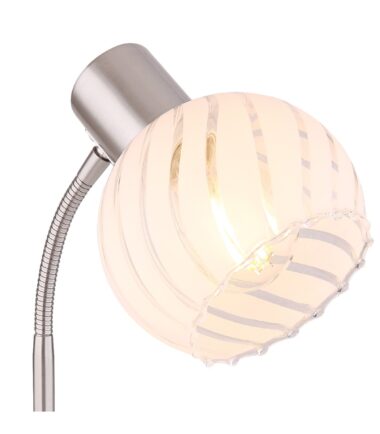 Stona lampa serije WILLY ističe se kombinacijom dizajna i izrade. Kombinacija nikl-mat metala i okruglog providnog belog, žleba i prugastog stakla osigurava odličan izgled. Spot je opremljen E27 grlom, koje vam omogućava da sami odredite sijalicu (max.40W) kako biste se odlučili na intenzitet svetlosti i boju svetla. Osim toga, ova stona lampa ima prekidač za uključivanje/isključivanje i kabl dugačak 1,5 metara, što omogućava fleksibilnu promenu položaja ove lampe. Sa drugim modelima iste serije proizvoda, sliku možete upotpuniti u svojim sobama.