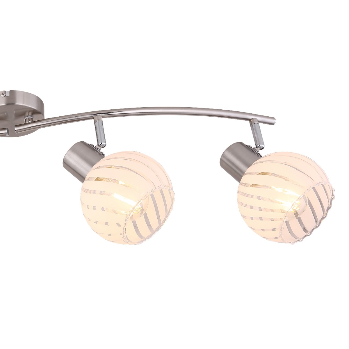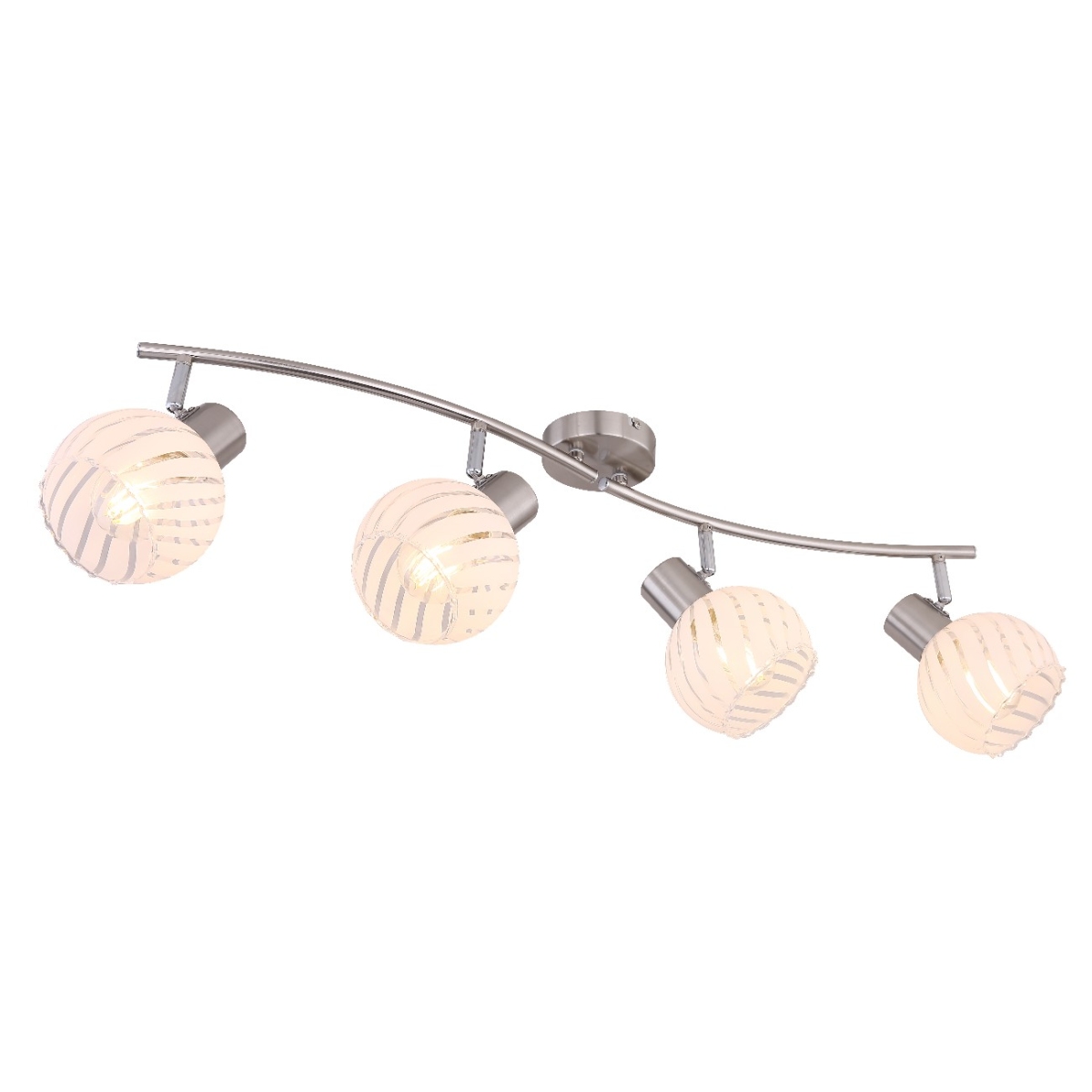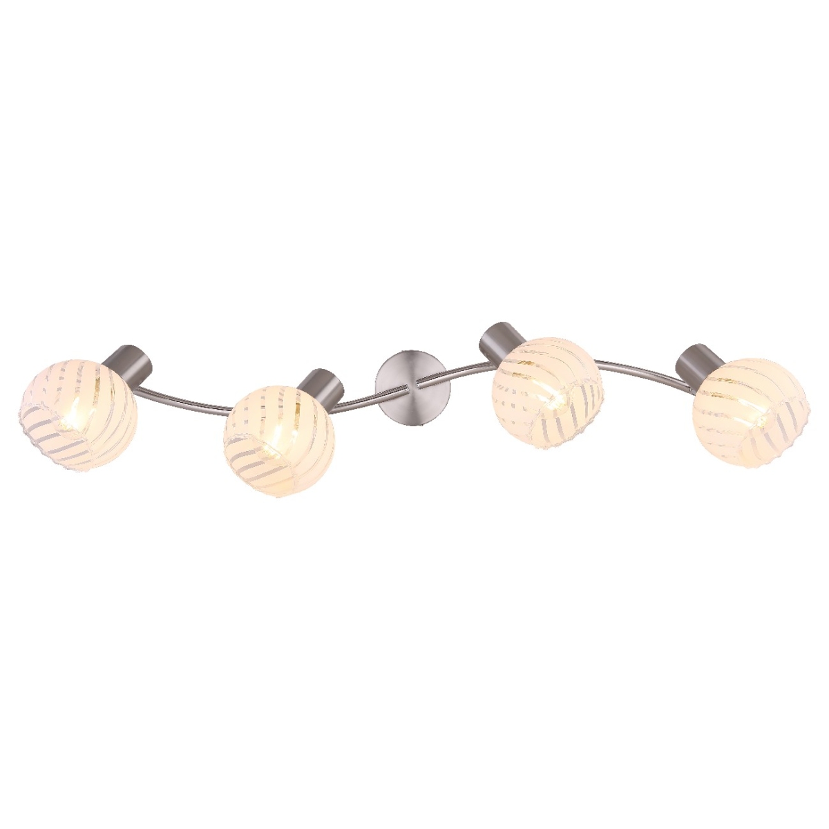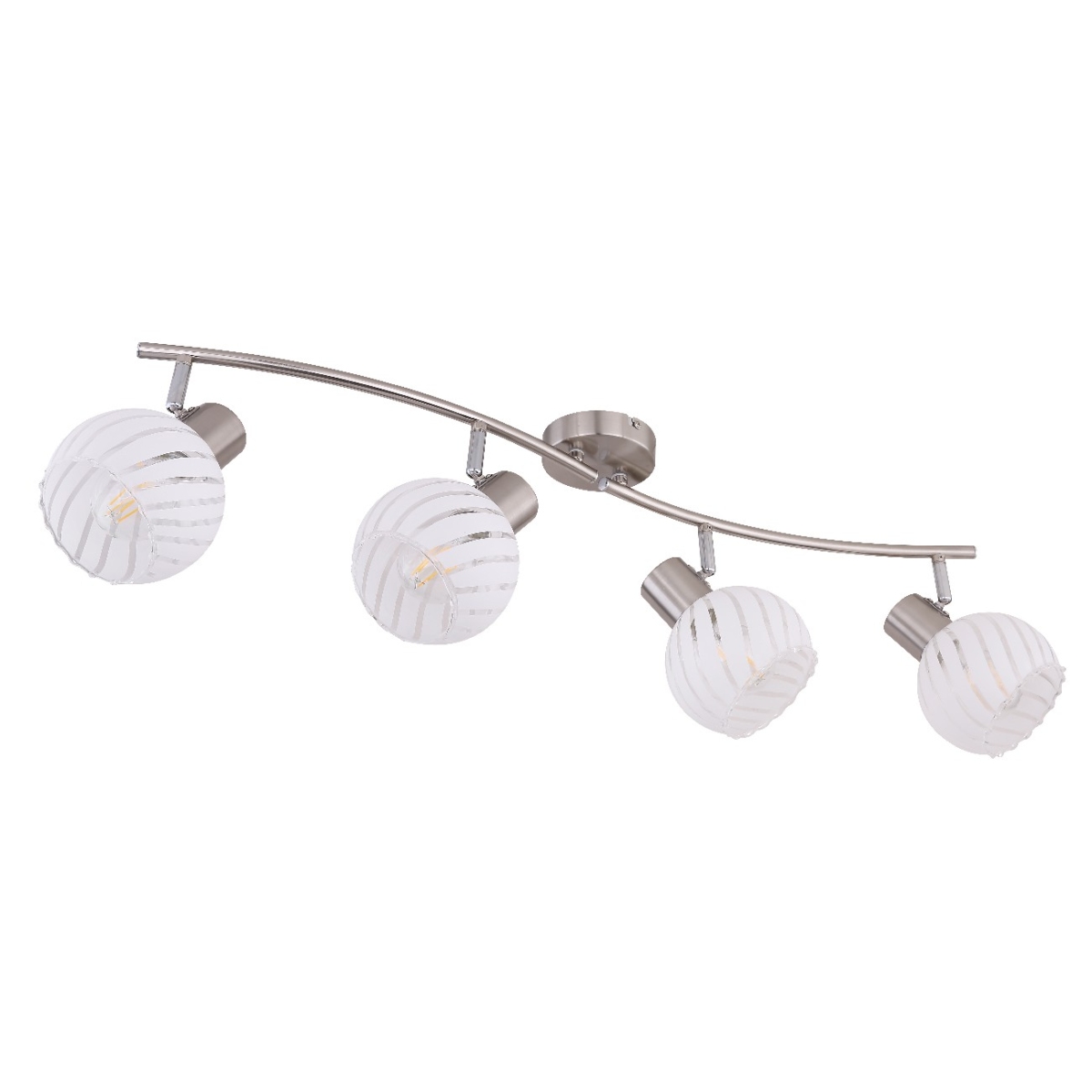 Plafonska lampa WILLY serije ističe se kombinacijom dizajna i izrade. Kombinacija nikl-mat metala i sfernih, žlebova i prugastih providnih belih stakala osigurava odličan izgled. Spotovi, pričvršćeni za dve fiksne, blago zakrivljene grane, opremljene su sa po dva E27 grla, što vam omogućava da sami odredite sijalicu (4 x max.40W) a samim ti i intenzitet svetlosti i boju svetla. Uz ostale reflektore iste serije proizvoda, sliku možete upotpuniti u svojim sobama.