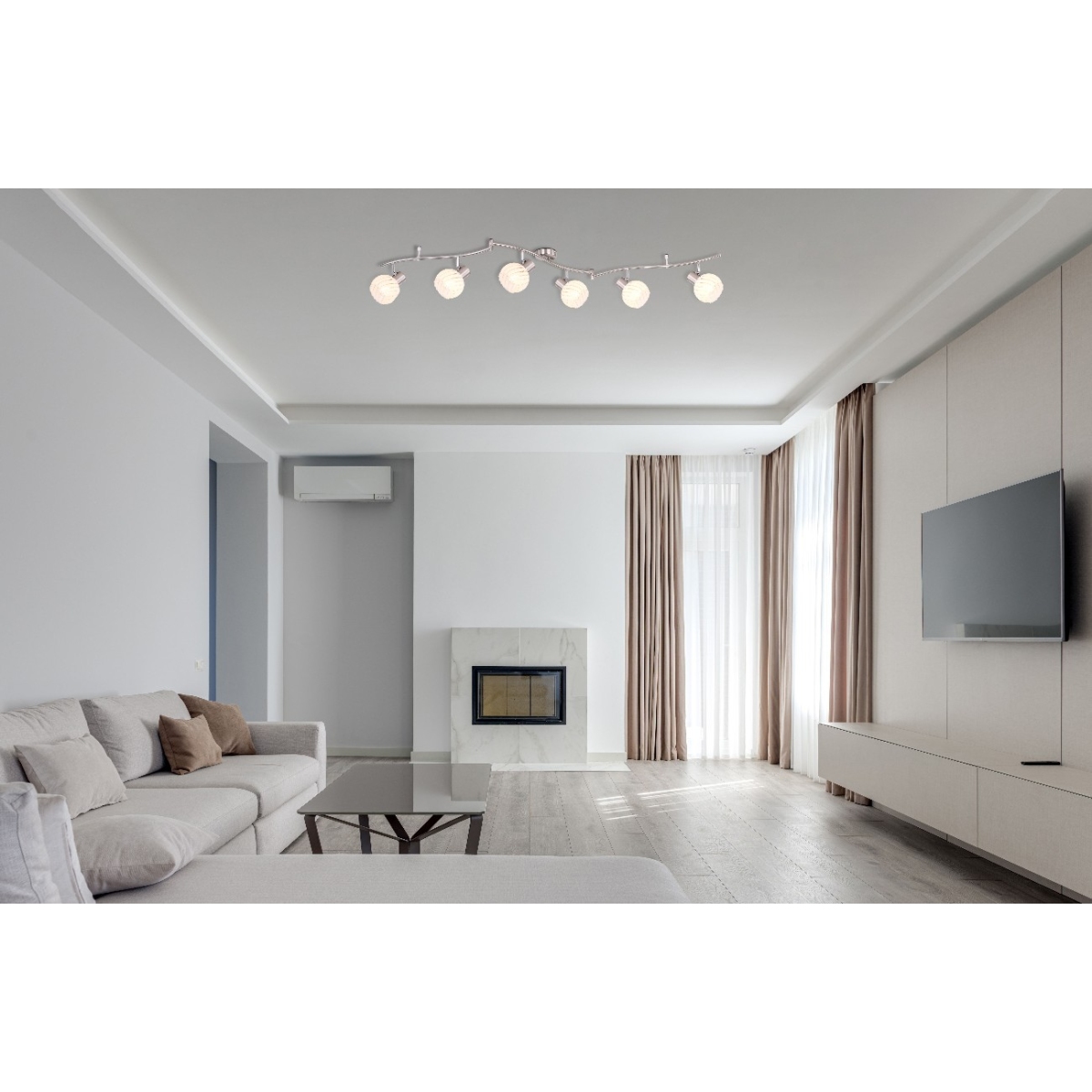 Plafonska lampa WILLY serije ističe se se kombinacijom dizajna i izrade. Kombinacija nikl-mat metala i okruglih, žlebova i prugastih providnih belog stakla osigurava odličan izgled. Reflektori prikačeni na spot sistem opremljeni su sa šest E27 grla, koja vam omogućavaju da sami odabetere sijalicu (6 x max.40W) kako biste se odlučili za intenzitet svetlosti i boju svetla. Uz ostale reflektore iste serije proizvoda, sliku možete upotpuniti u svojim sobama.
