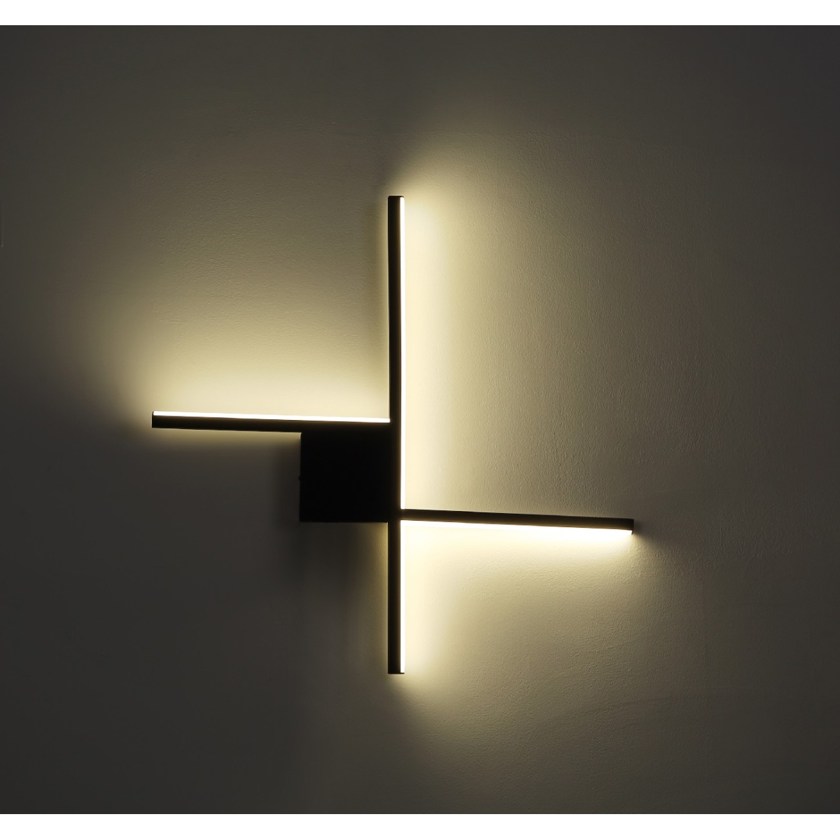 Ova moderna zidna lampa impresionira odličnim dizajnom. Sa kvadratne plafonske osnove u mat crnoj boji, četiri izdužena LED panela vire u svakom smeru i sijaju neutralnim svetlom od 4000 Kelvina, koje pruža prijatnu atmosferu.