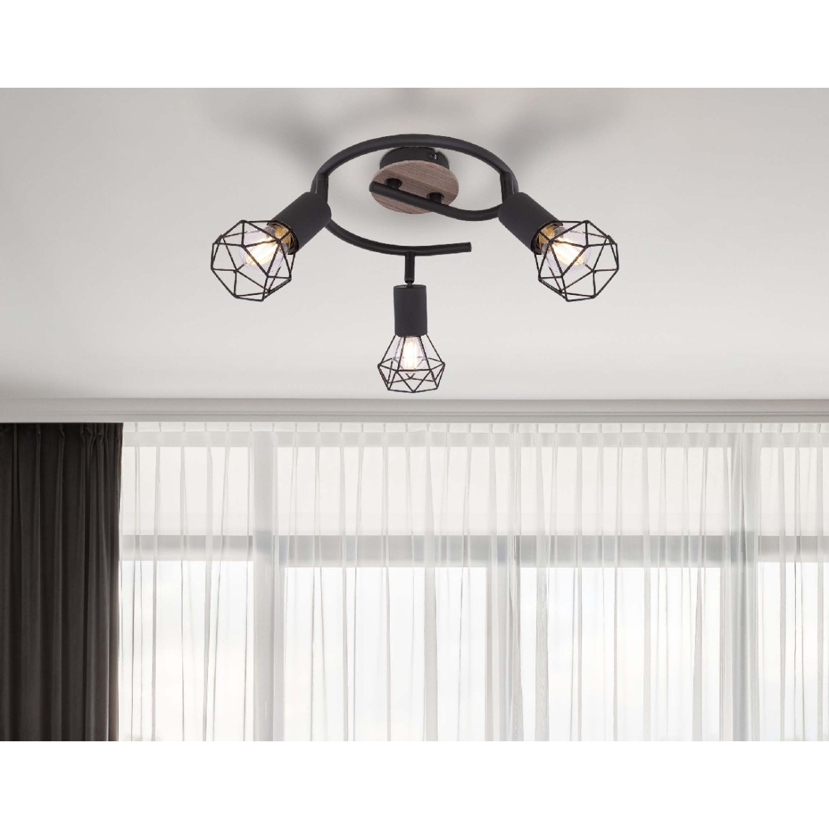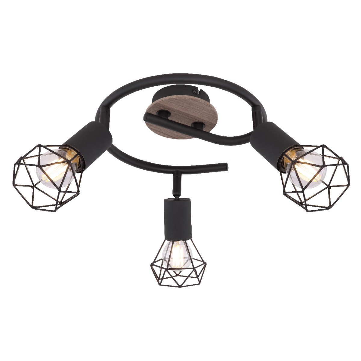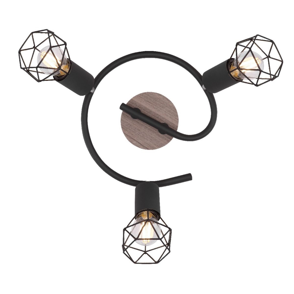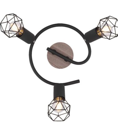 Ovaj plafonski reflektor iz serije Xara I (ø 23 cm) je divan za vaš enterijer. Spiralno zakrivljena, crna mat metalna šipka je pričvršćena za okruglu drvenu ploču i opremljena je sa tri E14 grla, uključujući metalne rešetkaste abažure. Možete ih opremiti odgovarajućim lampama po vašem izboru, što vam daje mogućnost da individualno određujete boju svetlosti i osvetljenost. Sa više artikala iste serije, možete upotpuniti celokupnu sliku u svoja četiri zida i stvoriti stilsku atmosferu.