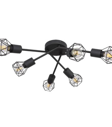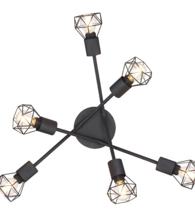 Plafonska lampa XARA I ističe se svojim elegantnim dizajnom. Šest ne-pokretnih, uzbudljivo raspoređenih crnih metalnih abažura u obliku dijamanta privlačiće svačiju pažnju. Grla E14 vam omogućavaju da sami izaberete pravu sijalicu za vas (max. 40W) i na taj način odredite boju svetla i intenzitet svetlosti. Zbog njihove uštede energije i dugovečnosti preporučujemo LED sijalice. Uz dodatne reflektore iz ove serije možete upotpuniti sliku u svoja četiri zida.