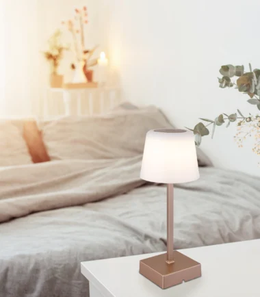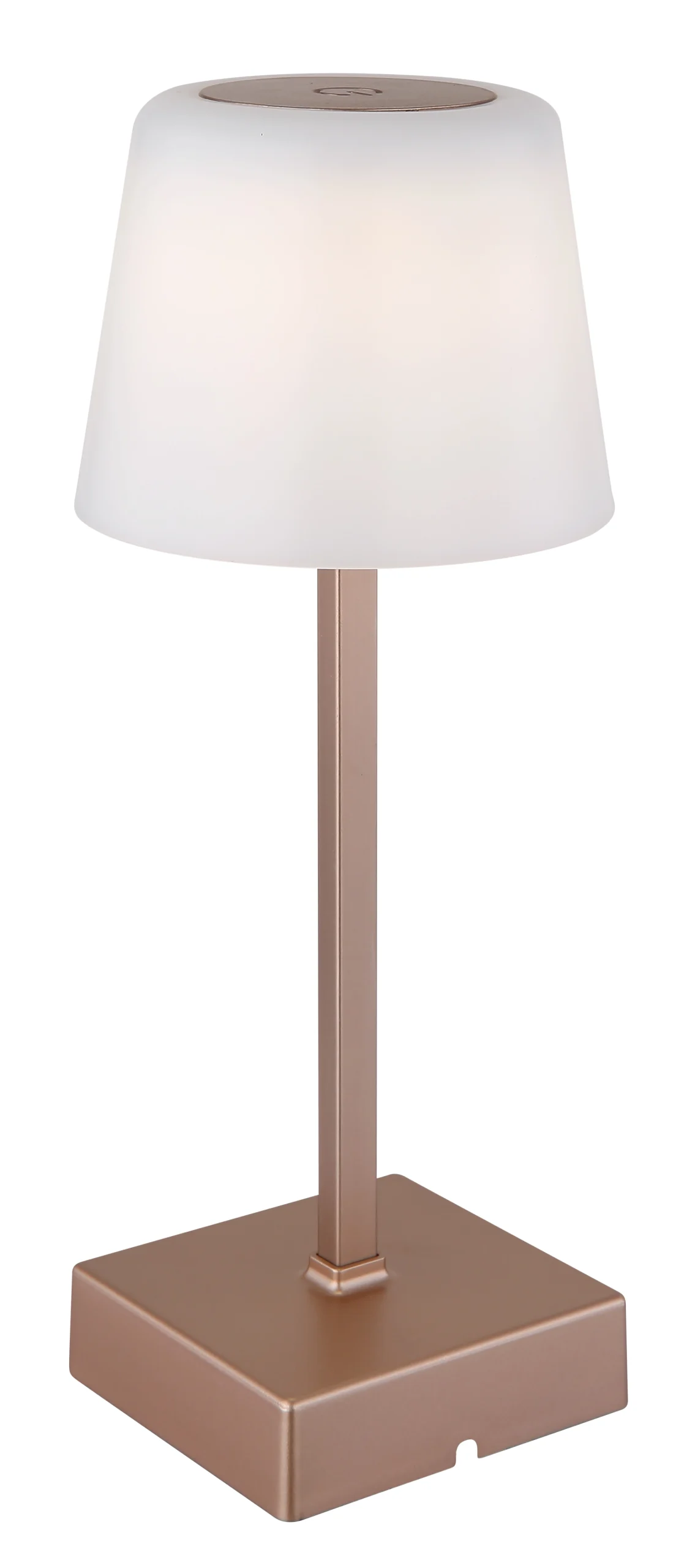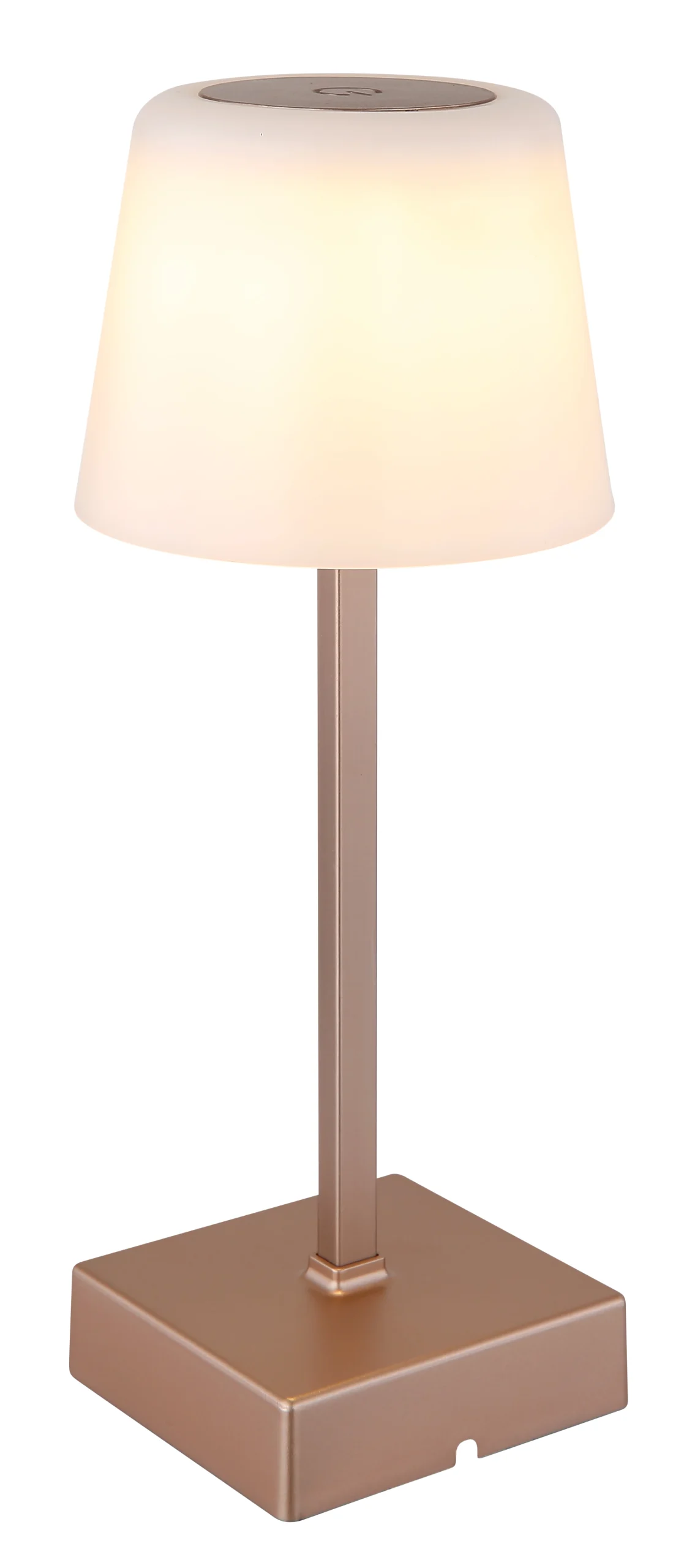 Stona lampa XAYDEN impresionira svojim modernim dizajnom i raznovrsnim funkcijama. Sa okruglim abažurom od opal plastike i kvadratnom osnovom od elegantne mat plastike boje šampanjca i aluminijuma, ona je stilski dodatak svakoj prostoriji. Zahvaljujući bezstepenom dodirnom dimeru, možete pojedinačno podesiti osvetljenost, a temperatura boje je promenljiva od 3000K do 6000K kako bi se stvorilo željeno raspoloženje osvetljenja. Pored toga, boja svetlosti se može fiksirati tako da željena atmosfera ostane trajna. XAYDEN ima praktičan dodirni prekidač za uključivanje/isključivanje, kao i USB kabl za punjenje koji omogućava punjenje za oko 4 sata. Sa vremenom rada do 6 sati, LED svetlo pruža dugotrajno osvetljenje. Kompaktna veličina sa prečnikom od 85 mm i izlaznom snagom od 106 lumena čini XAYDEN fleksibilnim i svestranim izvorom svetlosti koji pruža prijatno osvetljenje u svakoj prostoriji.