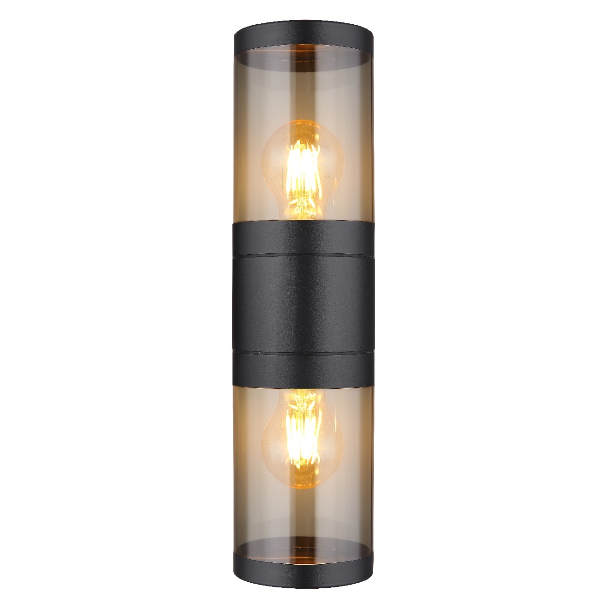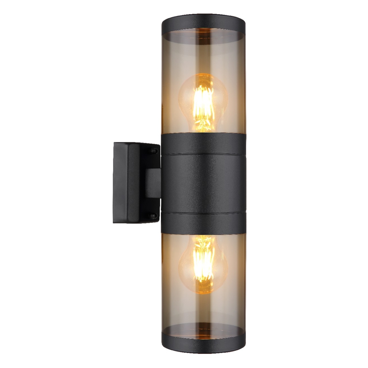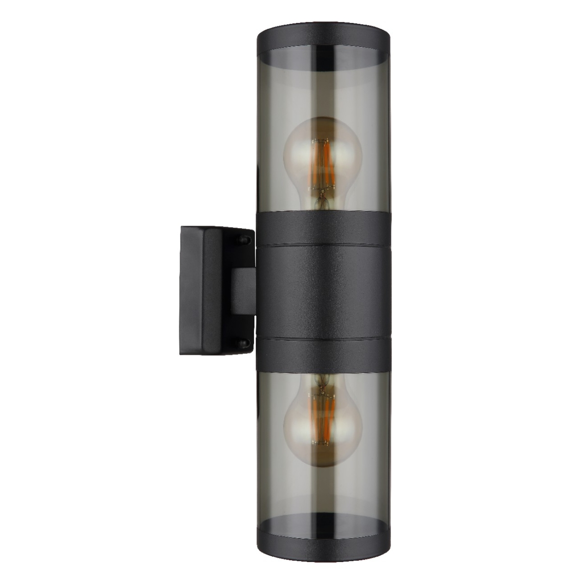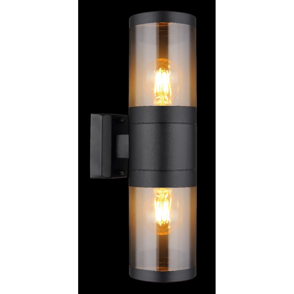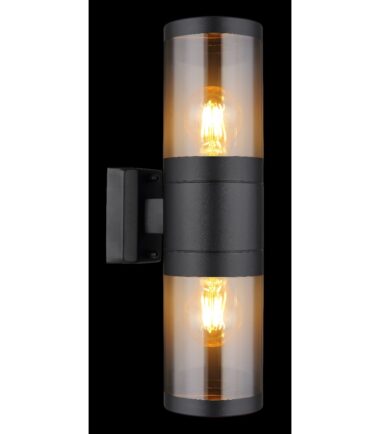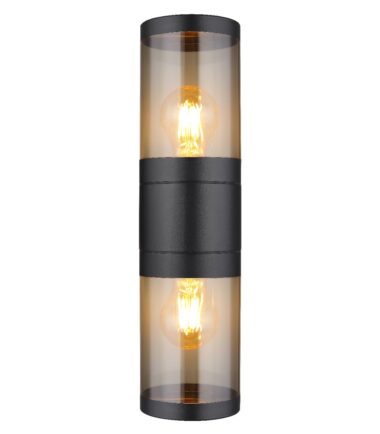 Ova sjajna zidna lampa inspiriše modernim dizajnom. Cilindrično kućište sa staklom u boji dima i dva E27 grla, koja su pozicionirana gore-dole, prodiru iz pravougaone zidne osnove. E27 grla vam omogućavaju da sami odredite boju svetla i jačinu do maksimalnog izlaza od 60 vati. Zbog dugovečnosti i uštede energije preporučujemo LED sijalice.