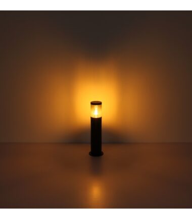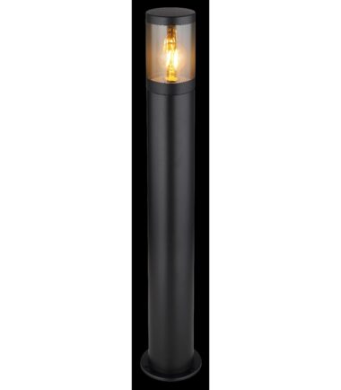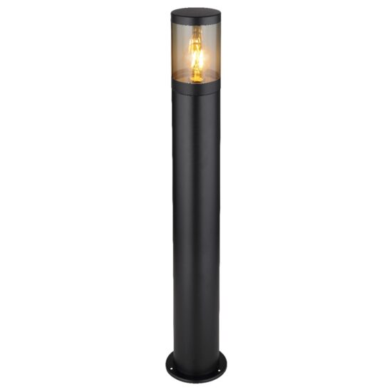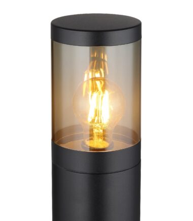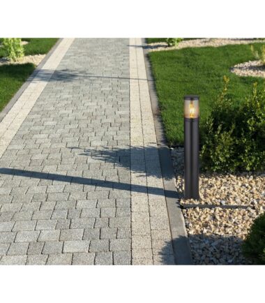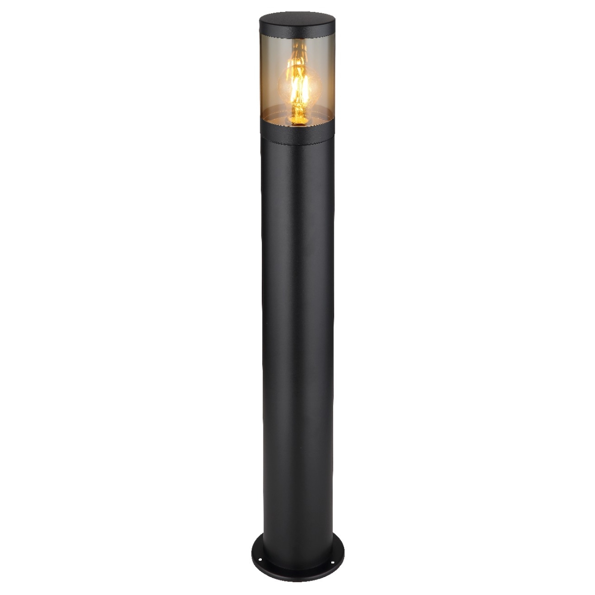 Ova sjajna lampa na otvorenom impresionira svojim modernim dizajnom. Iz okrugle osnove viri cilindrično kućište od 80 cm sa staklom u boji dima ispod kojeg se nalazi E27 grlo. To vam omogućava da sami odredite boju svetla i jačinu do maksimalno do 60 vati. Zbog dugovečnosti i uštede energije preporučujemo LED sijalice.