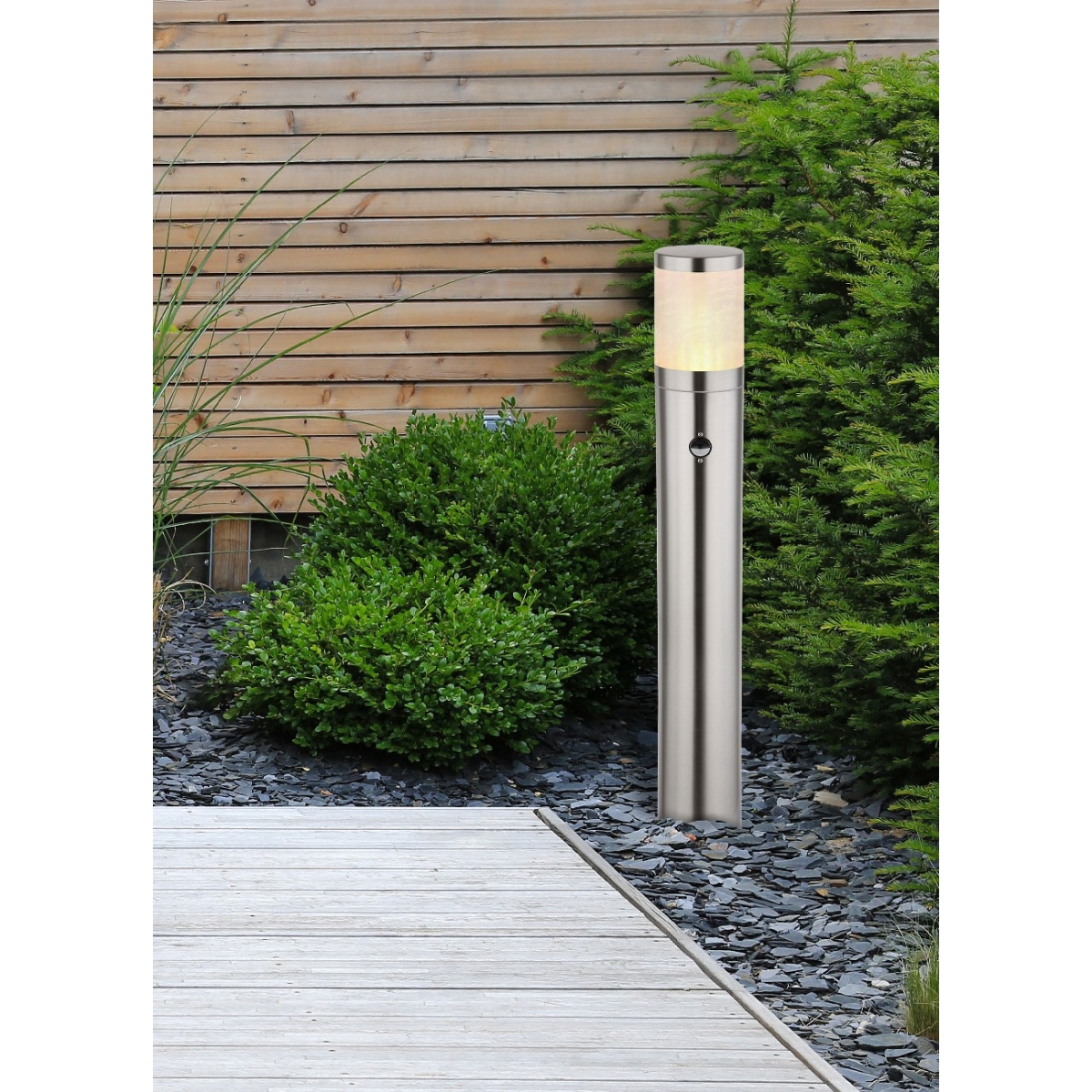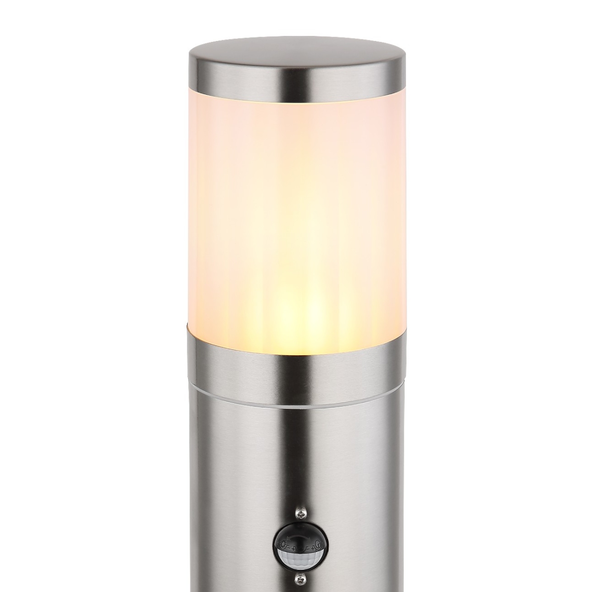 Ovaj moderni dizajn spoljašnje lampe pripada XELOO seriji i napravljena je od nerđajućeg čelika u srebrnoj i opaloj plastici. Opremljena IP44 zaštitom, idealana je za korišćenje na otvorenom. Postojeće E27 grlo (max. 60W) nalazi se u lampi cilindričnog oblika od 80 cm pruža vam mogućnost da sami odredite boju svetla i jačinu. Uključeni senzor reaguje u rasponu od 4-8 m i 110°. Pomoću ove lampe možete upotpuniti svoje prostore na otvorenom sa stilom. Postavite akcente.