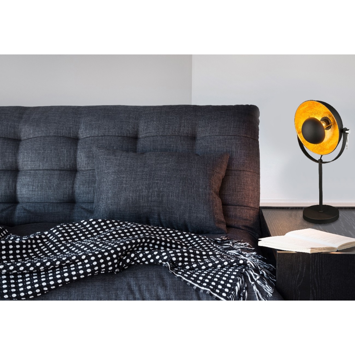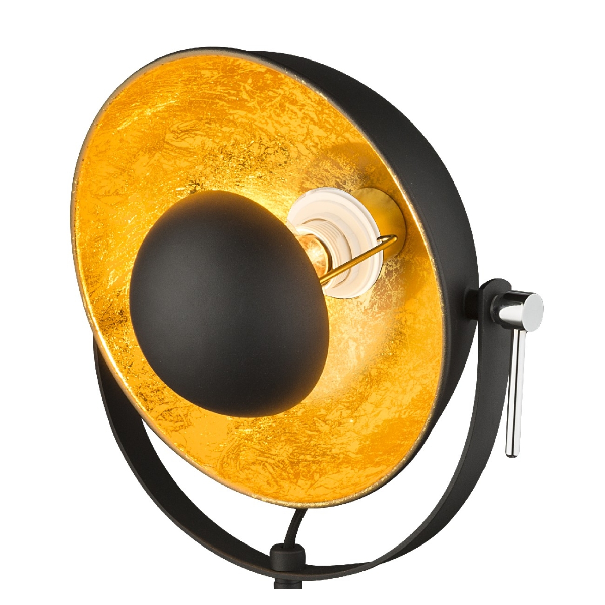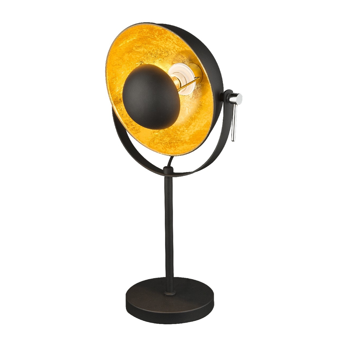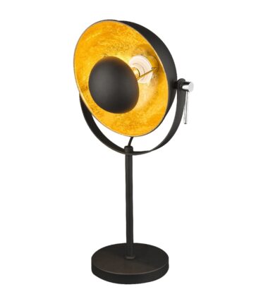 Ova originalna crna stona lampa, serije XIRENA, impresionira svojim izgledom koji privlači pažnju. Abažur se može podešavati i obojen je zlatnom bojom iznutra. Ova lampa radi pomoću prekidača za isključivanje i uključivanje i ima E27 grlo, za koje se sijalica može slobodno izabrati do maksimalne snage od 40 vati. Uz ostale razne lampe ove serije možete upotpuniti svoju sliku.