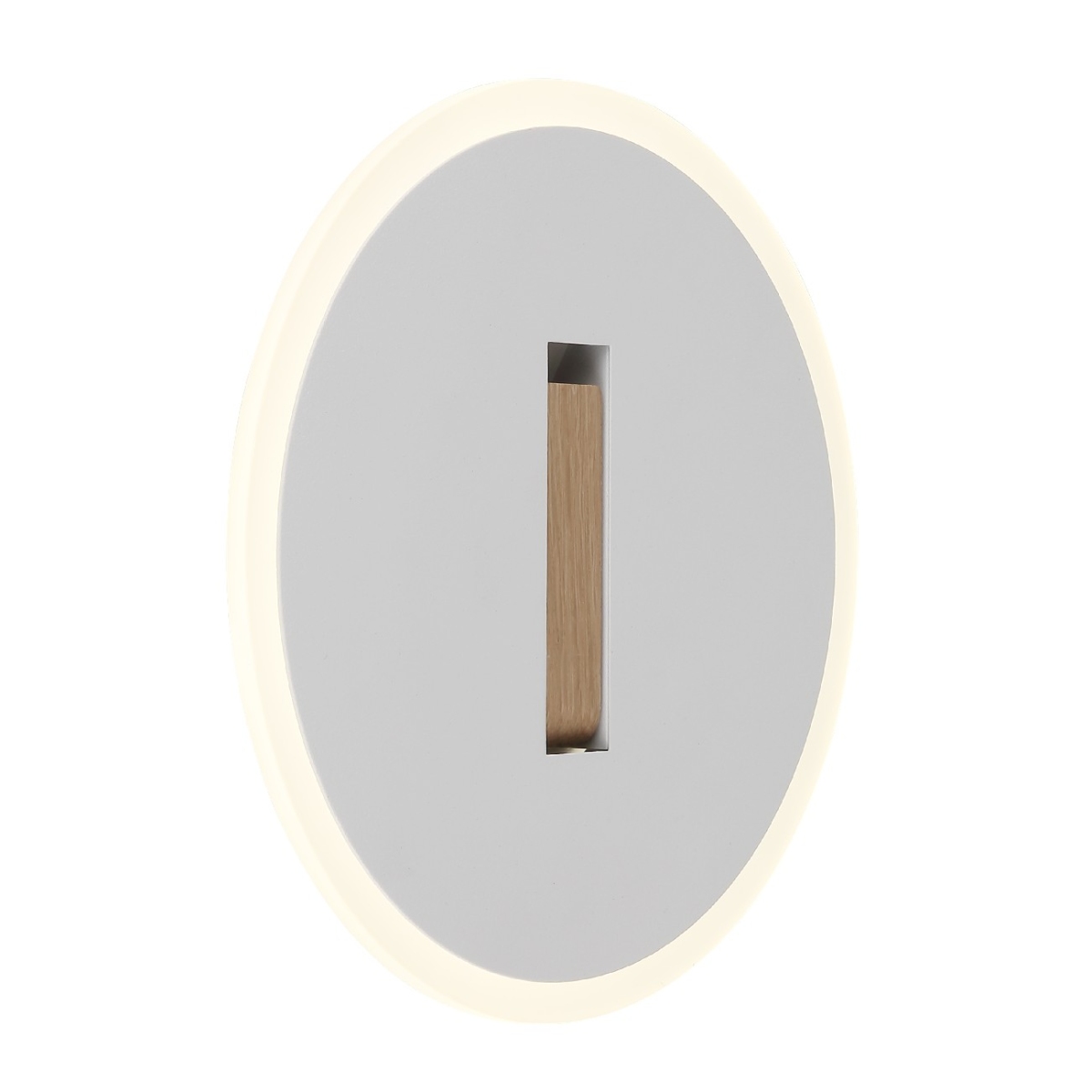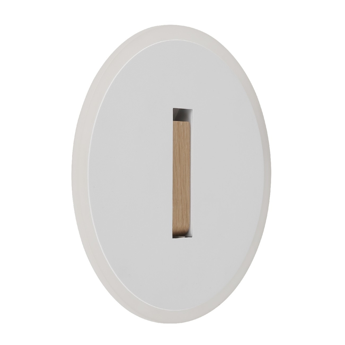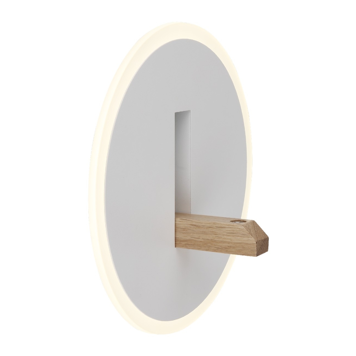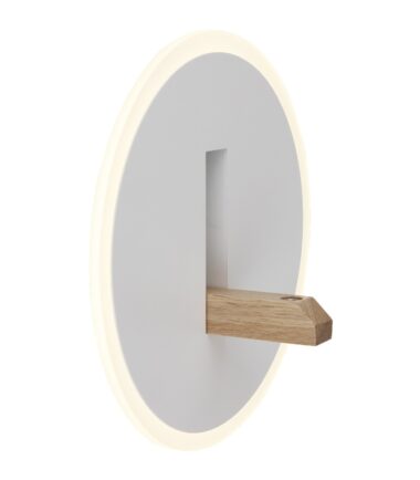 Moderna i praktična okrugla zidna lampa impresionira svojim jednostavnim, ali elegantnim dizajnom. Telo od mat belog metala u kombinaciji sa tamno smeđim drvetom daje lampi bezvremenski izgled. Sa prečnikom od 204 mm i visinom od 30 mm, zidna lampa proizvodi svetlosnu snagu od 400 lumena sa temperaturom boje od 4000K. Opremljena je sklopivom kukom koja može da posluži kao čiviluk. Savršena je za hodnike i ulazne prostore. Integrisana LED tehnologija obezbeđuje efikasno osvetljenje koje štedi energiju.