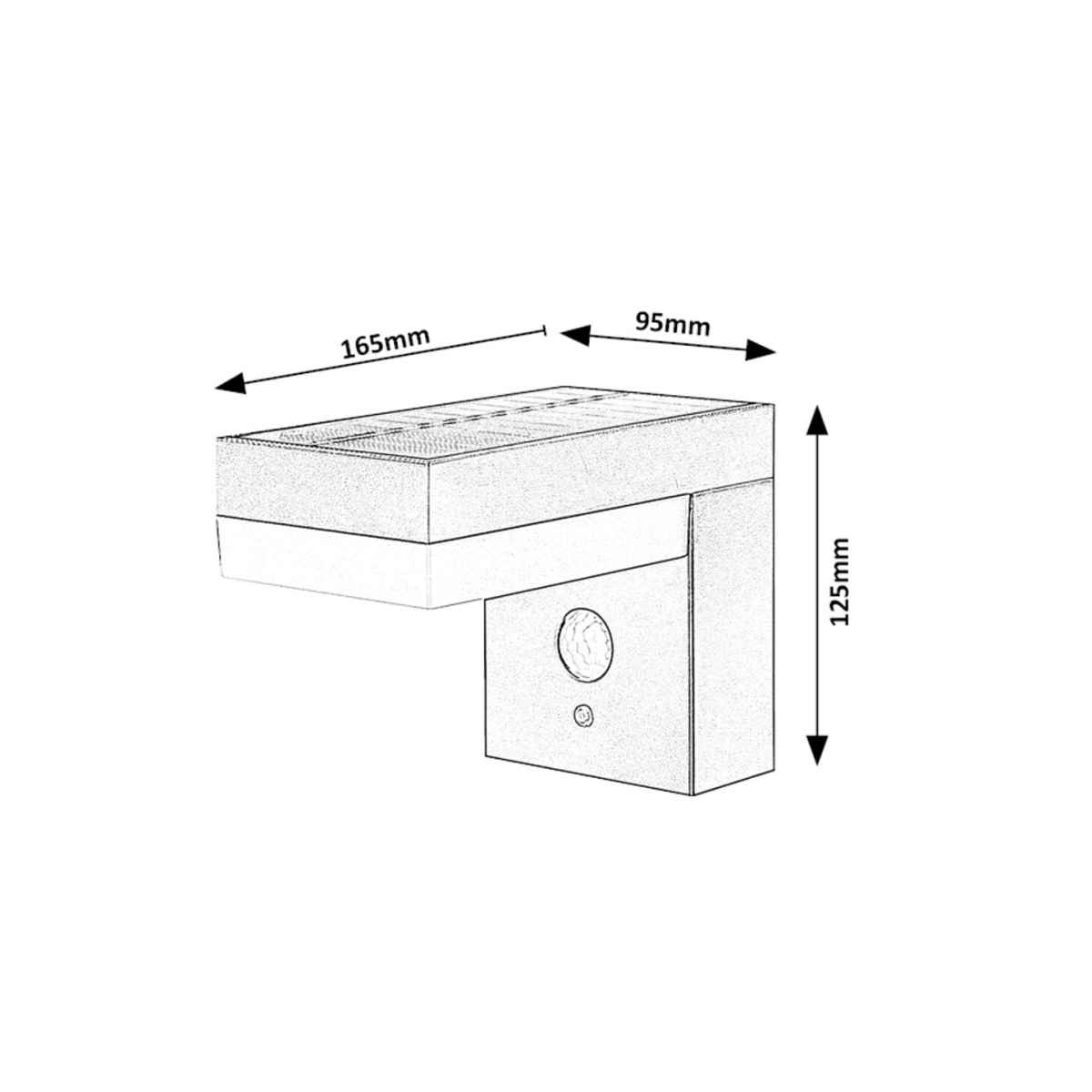 Spoljna solarna zidna lampa Zrebar modernog stila sa senzorom pokreta prvenstveno se preporučuje za terasu, u blizini ulaznih vrata ili spoljašnjeg zida kuće, gde možete da osvetlite pešačku stazu koja vodi do ulaznih vrata. Ovaj crni model koji je napravljen od aluminijuma upotpunjen je belim plastičnim abažurom. Lampa svetli nadole. Zrebar ima ugrađen LED izvor svetlosti snage 6 V, svetlosnog fluksa od 450 lumena sa senkom i 600 lumena bez senke i temperaturom boje od 4.000 K. Sijalica koja emituje prirodno belo svetlo ima životni vek od 10.000 sati. Baterija ima napon od 3,7 V i kapacitet od 2.200 mAh. Pametni senzor detektuje kretanje sa udaljenosti od 8 metara pod uglom gledanja od 90°, a osvetljenost lampe se prilagođava okolnostima. Zrebar koji ima prekidač širine je 95 mm, visine 125 mm i udaljenosti od zida 165 mm. IP44 zaštita ove spoljne lampe obezbeđuje da je zaštićena od upada predmeta prečnika do 1 mm i od prskanja vode iz bilo kog smera.