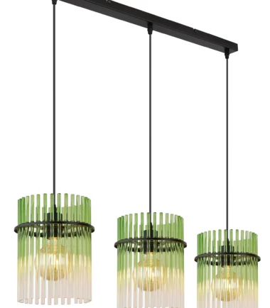 GORLEY – Viseća lampa – metal crna mat – staklene šipke zelene – 15698-3HRG